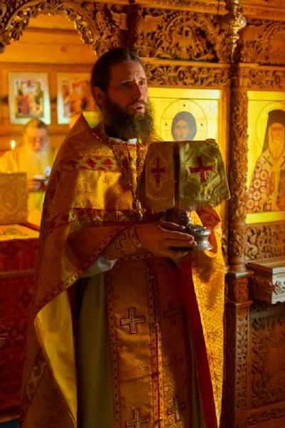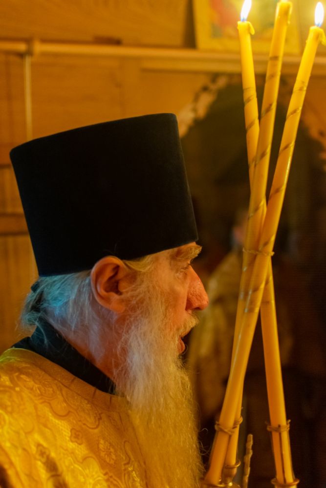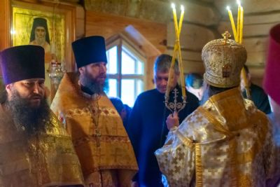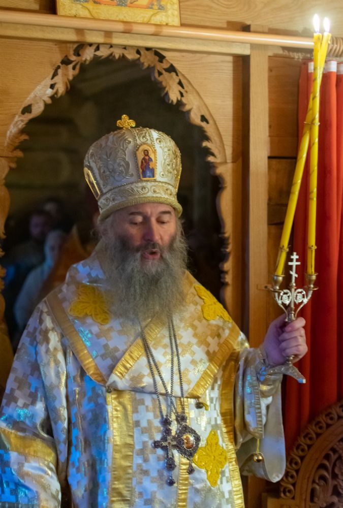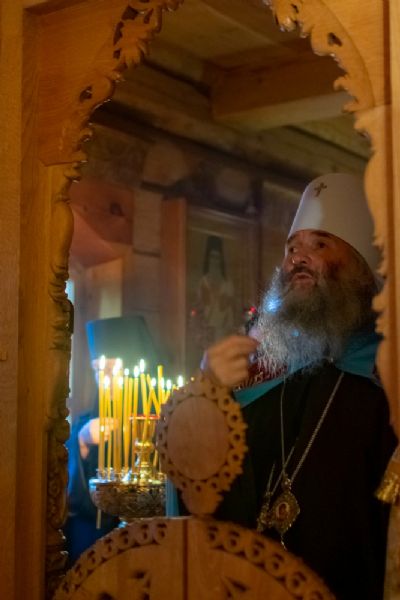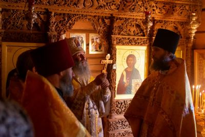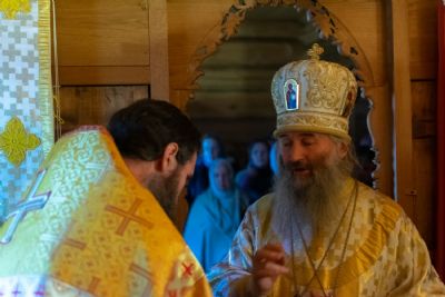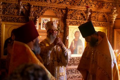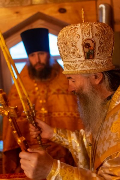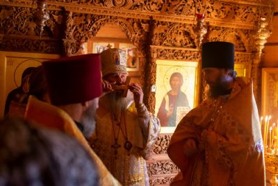 Богослужение началось торжественной встречей Владыки и облачением в центре храма. После Литургии был совершен молебен перед иконой и частицей мощей святителя Нектария.
