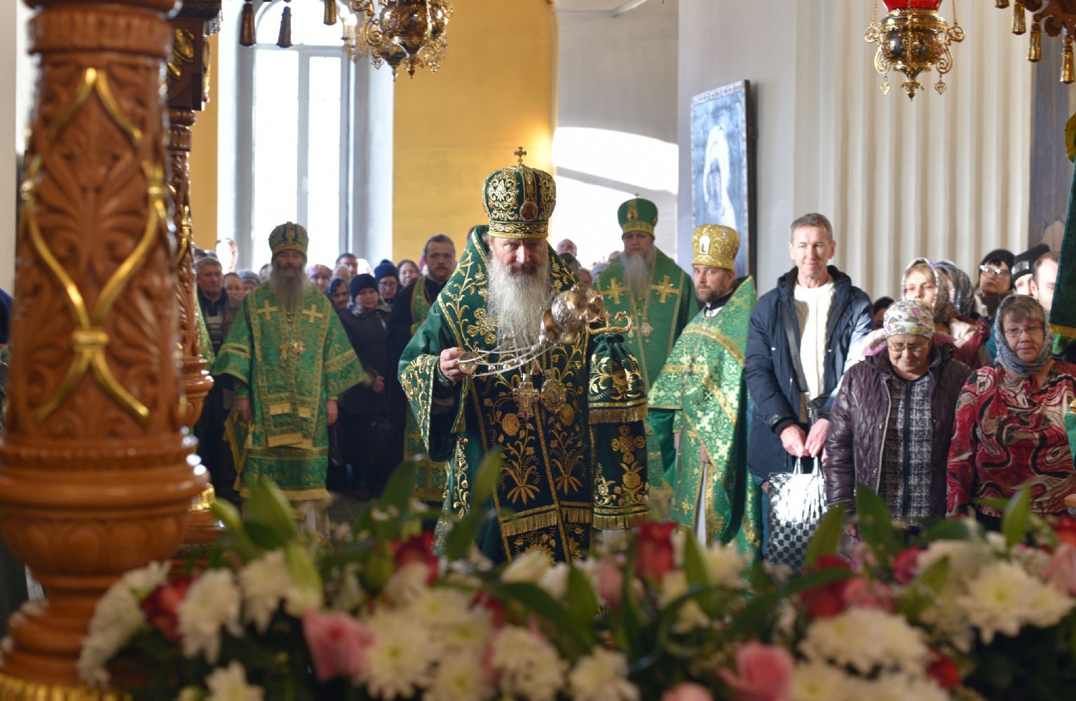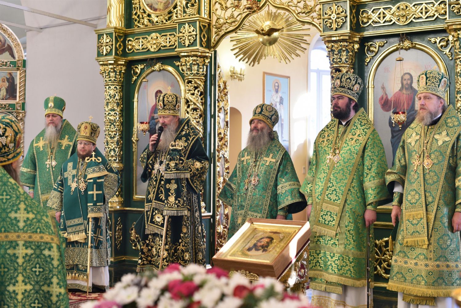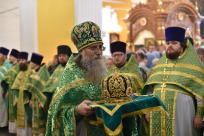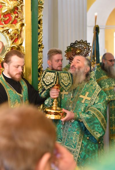 Божественную литургию совершил митрополит Вятский и Слободской Марк. Его Высокопреосвященству сослужили митрополит Йошкар-Олинский и Марийской Иоанн, епископ Альметьевский и Бугульминский Мефодий, епископ Яранский и Лузский Паисий, епископ Уржумский и Омутнинский Иоанн, епископ Волжский и Сернурский Феофан и духовенство Вятской митрополии.