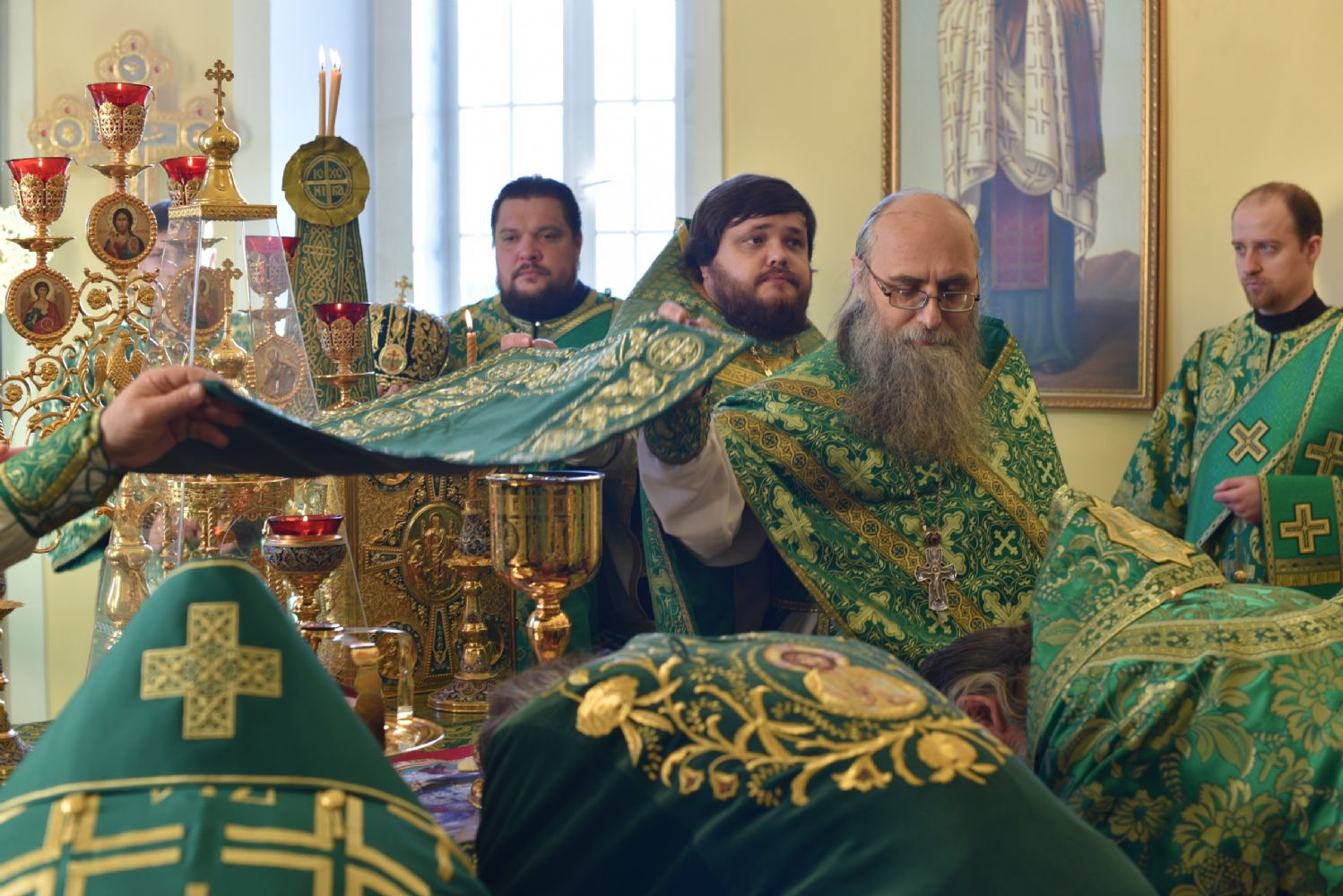 В конце богослужения архипастыри совершили славление преподобному Матфею у его святых мощей.