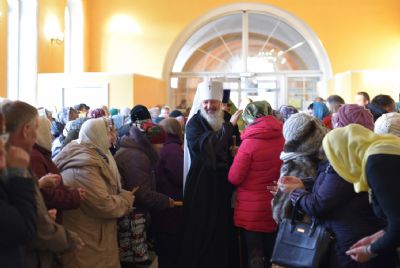 После многолетия глава Вятской митрополии поздравил верующих с праздником и, в частности, сказал: "Мы сегодня собрались в этом святом храме, чтобы едиными усты и единым сердцем прославить Бога и Его угодника, приобщиться к этой благодати и укрепить свои духовные силы".