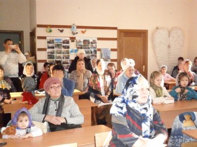 Гостей в уютном помещении воскресной школы собралось очень много. Праздник начался с общей молитвы «Царю Небесный». Во вступительном слове директор воскресной школы Светлана Александровна Шареева рассказала о празднике, о великой силе материнской любви, о том, как на войне, идя в последний бой, молодые солдатики кричали не «Ура!», а «Мама!», о том, как слишком поздно мы понимаем, что даже в материнском наказании – великое благо и великая любовь.