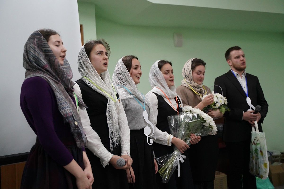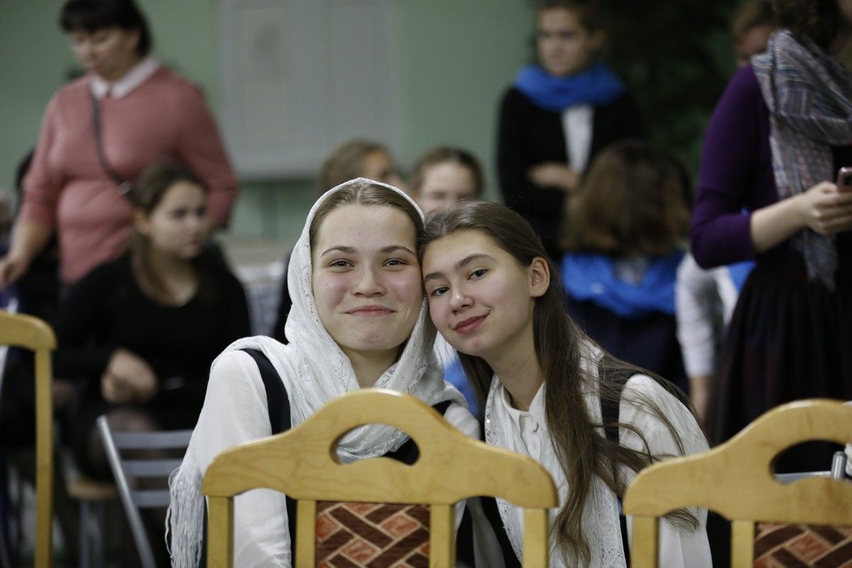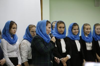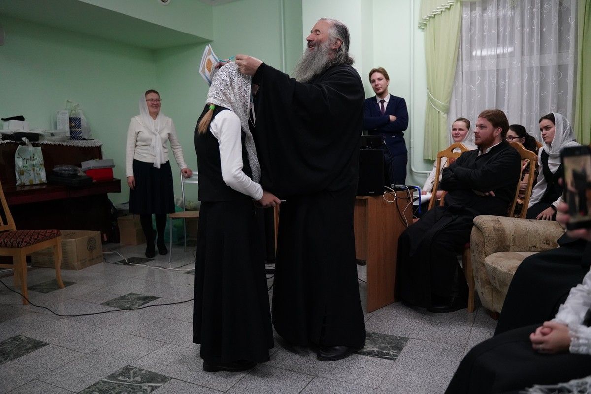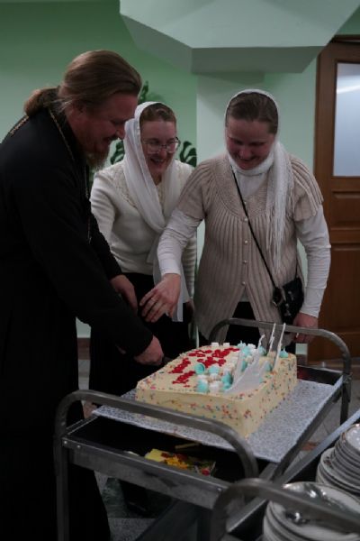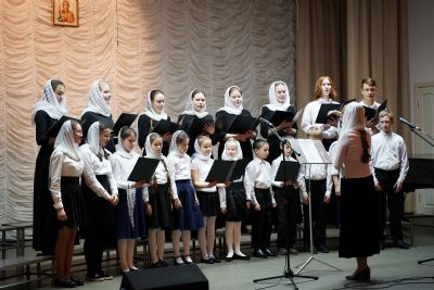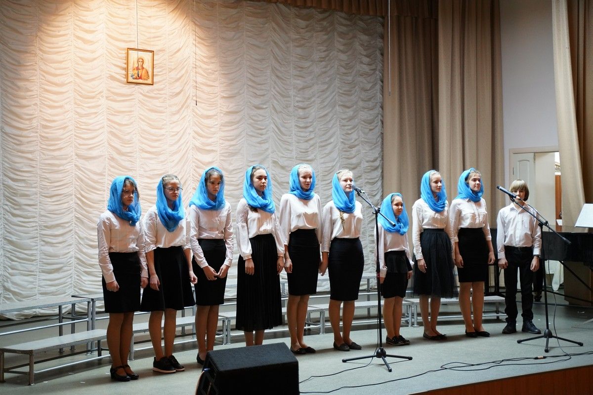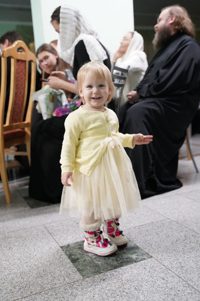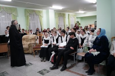 Здесь состоялось посвящение в хор новых певцов. Четыре девочки, которые уже несколько лет пели в младшем хоре, пройдя «экзамен» у Владыки, пополнили ряды старшего хора.