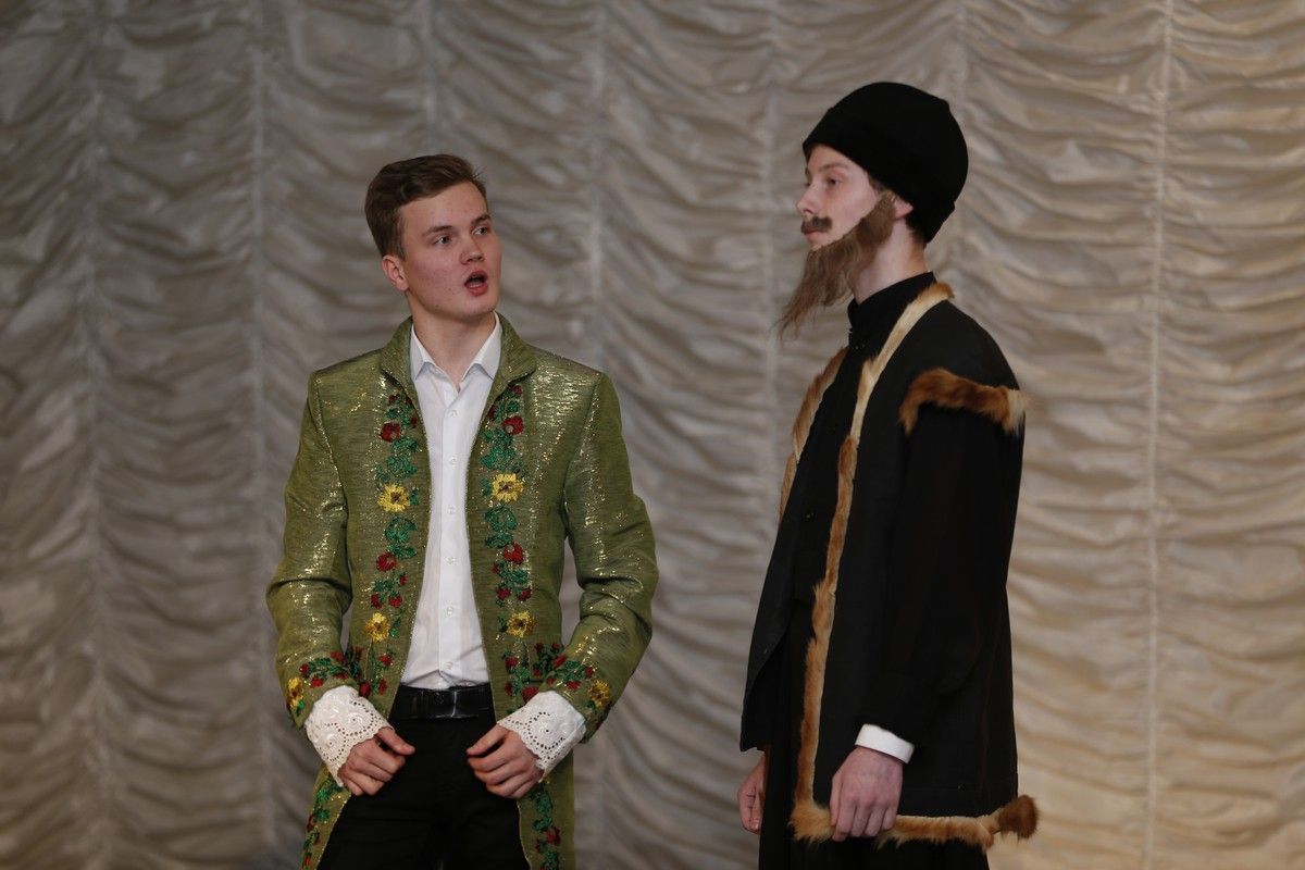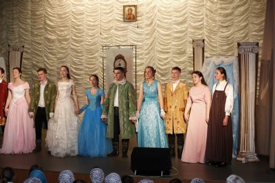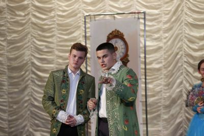 Ребята из старшего хора прекрасно справились с игрой и безупречно смогли передать замысел режиссера. Не менее профессионально они справились и с музыкальной частью спектакля – бальными танцами.
