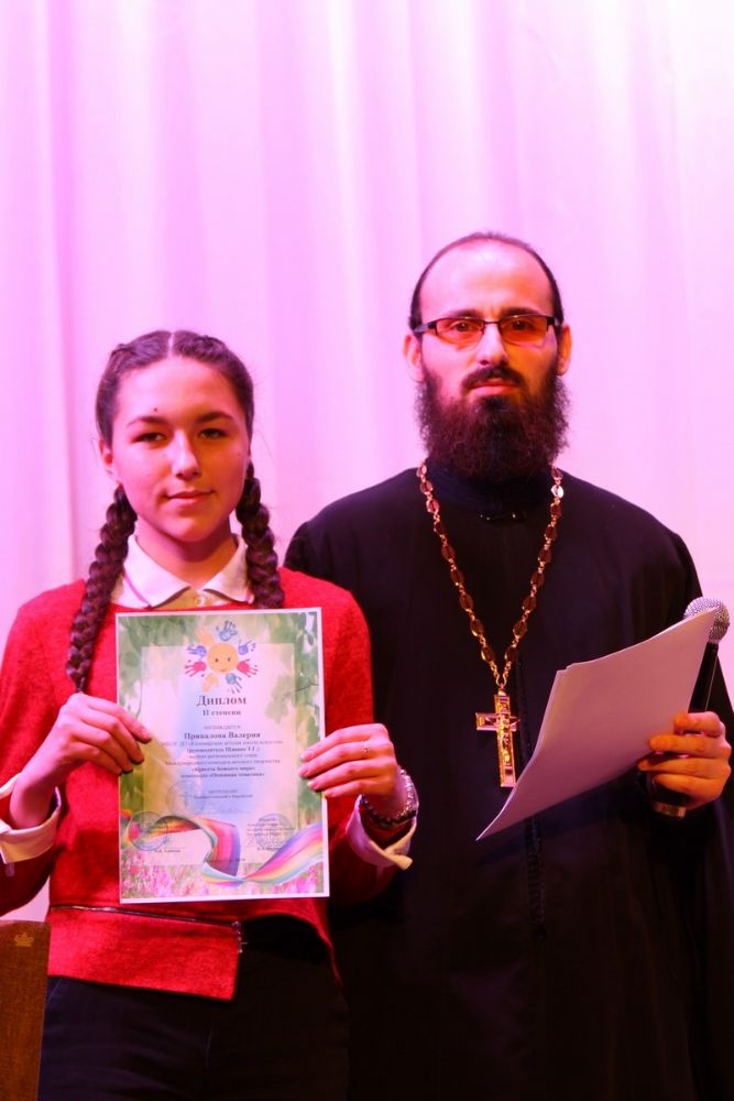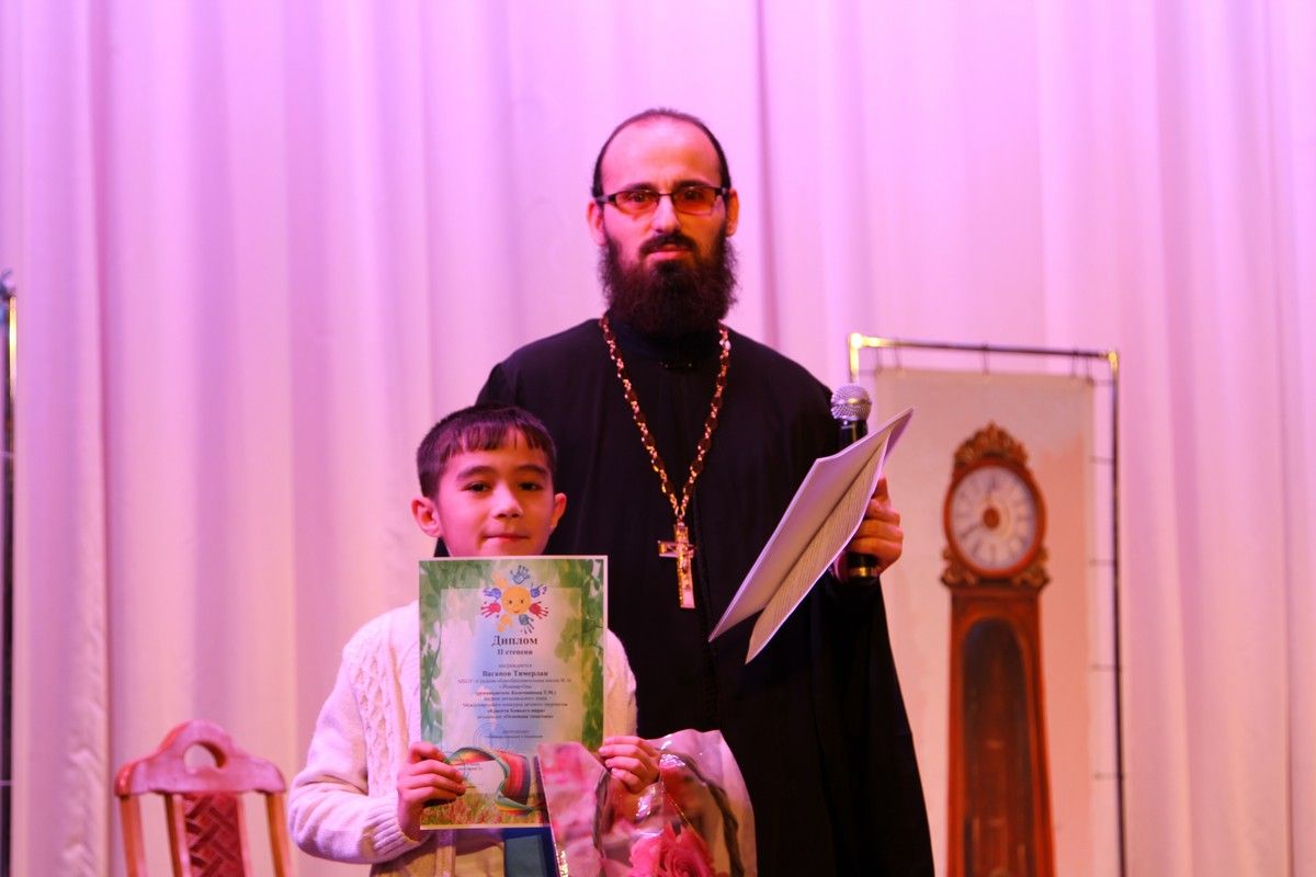 Дипломы и ценные подарки победителям Конкурса вручил заместитель руководителя отдела религиозного образования и катехизации Йошкар-Олинской и Марийской епархии иерей Иоанн Кристев.