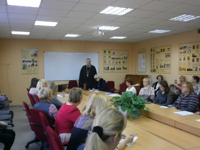 В семинаре далее приняли участие учителя школ города, которые делились опытом не только преподавания модуля ОПК, но и обращали внимание на проблемы, связанные с духовно-нравственным воспитанием: в частности, говорили о гражданском и патриотическом воспитании детей в младших классах образовательного учреждения, о практических аспектах патриотического воспитания в системе образования, о проектной деятельности как средстве воспитания патриотизма у обучающихся, о патриотическом воспитании на уроках английского языка и во внеурочной деятельности, о формах и методах работы с родителями по патриотическому воспитанию младших школьников, о созидательных традициях духовно-нравственного воспитания в системе гуманитарного образования.