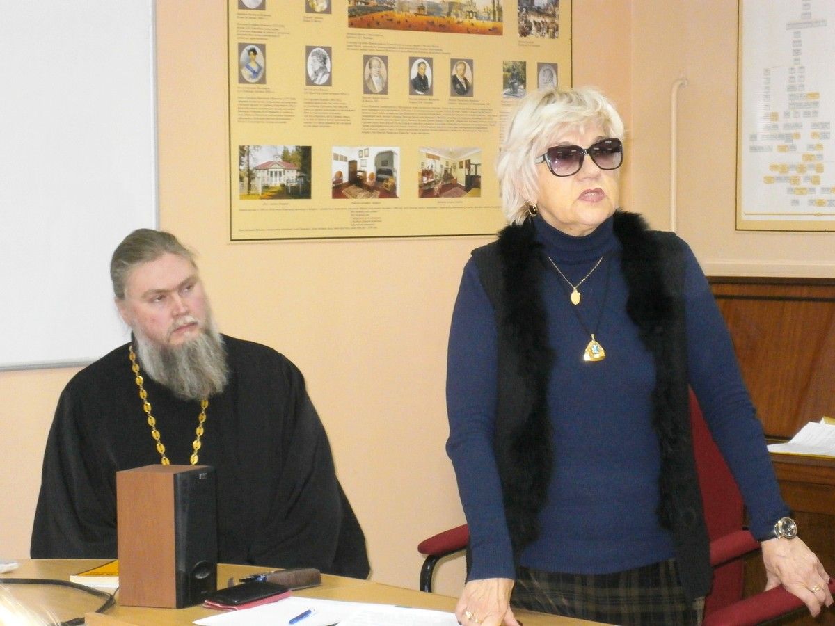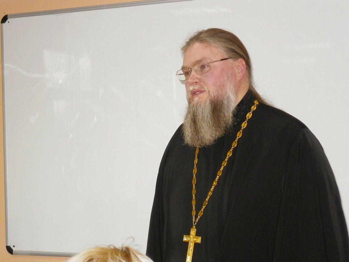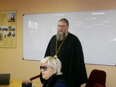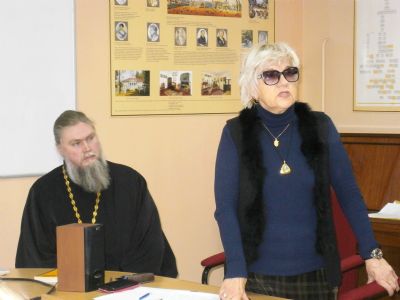 С приветственным словом к учителям обратился протоиерей Александр Бачурин, руководитель отдела по взаимодействию с Вооруженными Силами и правоохранительными органами Йошкар-Олинской и Марийской епархии, а затем в своем выступлении «Словом и мечом: подвиг Церкви в годы войны» отец Александр подчеркнул роль каждого слова в данной теме. Разговор о Великой победе получился глубоко духовным. Чтобы слово стало действенным, надо услышать священный трепет сердца. Священник Александр подчеркнул, что самое главное в победе – это подвиг, подвиг же – это не просто движение, а образ внутренней жизни. Величие подвига – в глубоком смирении. Подвиг всегда связан с духом, с великодушием, поэтому важно развить в себе великодушие. На вопрос: кому этот подвиг угоден? – отец Александр сам же дал ответ: «Богу, людям и стране».