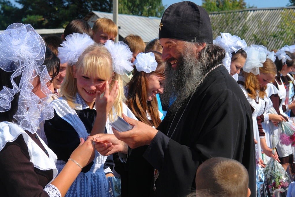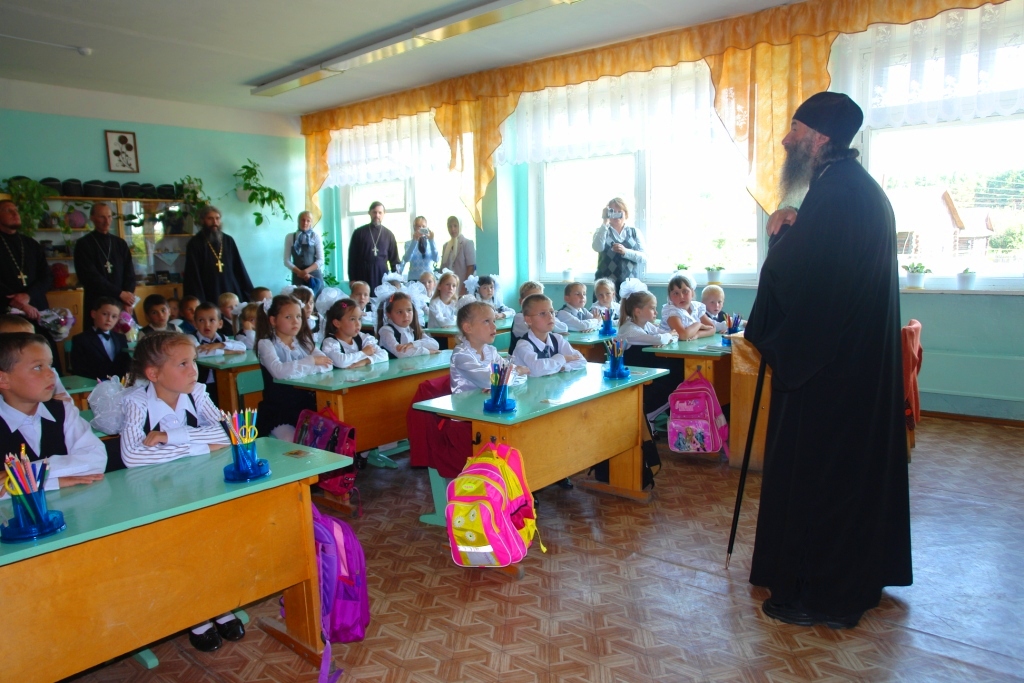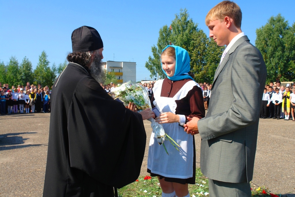 Дети уже ждали Владыку, встречая его хлебом-солью. И, конечно же, море цветов и улыбок. Архипастырь сердечно поздравил ребят с началом нового учебного года и подарил каждому по иконке. Благословив всех на начало учебного года, архипастырь отдельно встретился и побеседовал с первоклашками и будущими выпускниками.