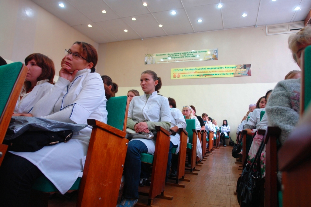 А готовит медсестер в республике Йошкар-Олинский медицинский колледж. В эти сентябрьские дни здесь проходит неделя первокурсника. И по традиции вот уже восьмой год открывает ее архиепископ Йошкар-Олинский и Марийский Иоанн.