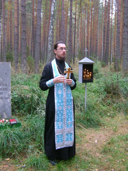 После заупокойной литии, отслуженной у братской могилы, сотрудник епархиальной комиссии по канонизации святых Юрий Ерошкин рассказал собравшимся о жизни и подвиге наших земляков - исповедников Православия. Известно, что годы советской власти в XX веке стали великим испытанием для Церкви и для России, временем, когда люди терпели притеснения за веру, переносили наказания и шли на смерть. И, тем не менее, не отрекались от веры и от Бога. Вера и любовь к Богу победили смерть.