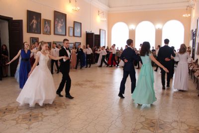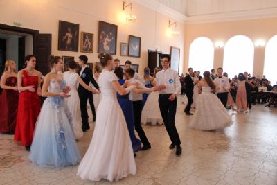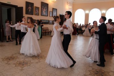 Ведущие объявляют первый танец - «полонез». И все присутствующие переносятся в то далекое время, когда строго выполнялся бальный церемониал. Участники преображаются - кавалеры выпрямляются в струнку и галантно кланяются, девушки становятся легкими, изящными и уверенными, чувствуя поддержку своих внимательных партнеров. Грациозно и торжественно участники идут по залу.