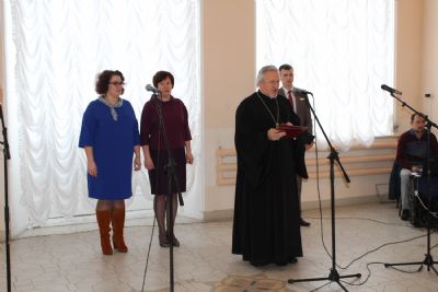 Настоятель храма Архангела Михаила протоиерей Николай Барсуков зачитывает послание патриарха Московского и Всея Руси Кирилла к православной молодежи России. От имени Предстоятеля РПЦ отец Николай сердечно поздравляет всех со светлым праздником Сретения Господня, к которому по установившейся традиции приурочено празднование Всероссийского дня православной молодежи.