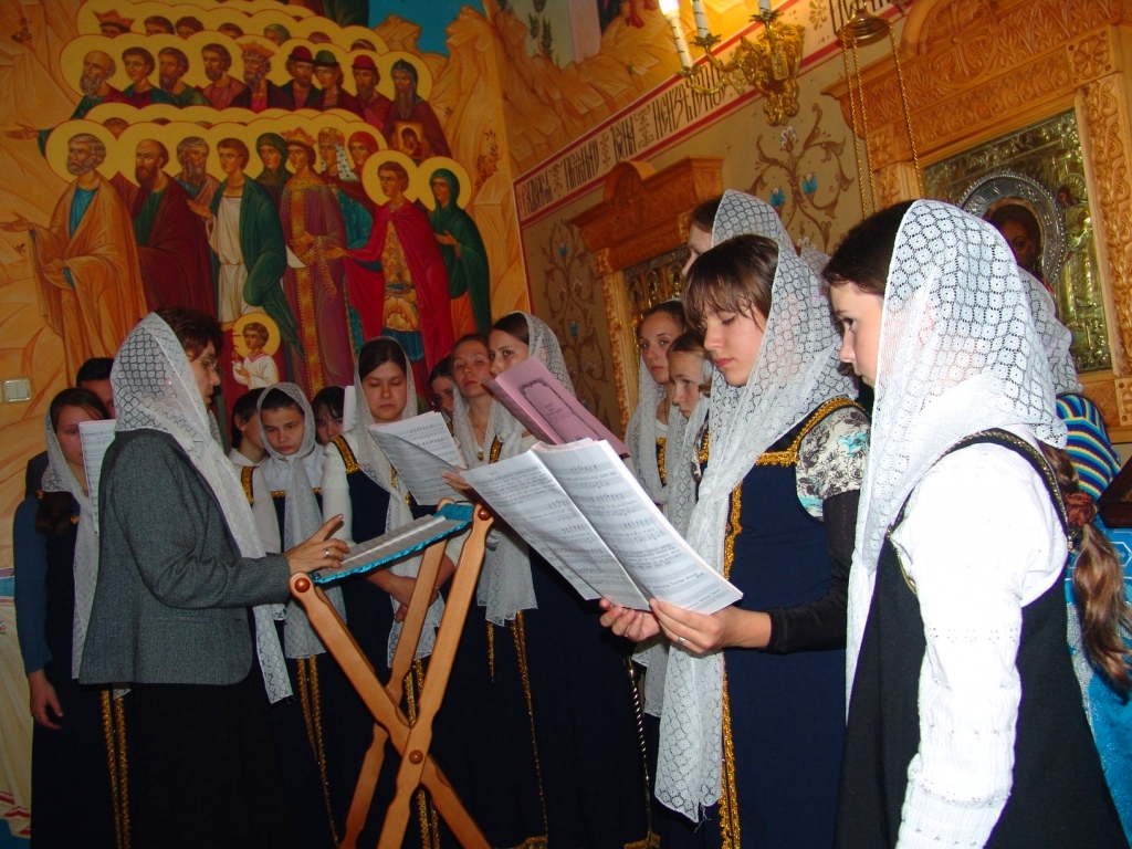 Воскресную литургию гости пели в Воскресенском храме вместе с архиерейским хором. На службе для прихожан звучало антифонное пение - поочередное пение двух хоров. Согласно церковному Преданию св. Игнатий Богоносец увидел в видении Ангелов, которые славили Святую Троицу антифонными песнями. Этот способ пения он ввел у себя в Антиохии. Оттуда традиция антифонного пения распространилась во всех поместных Церквях.