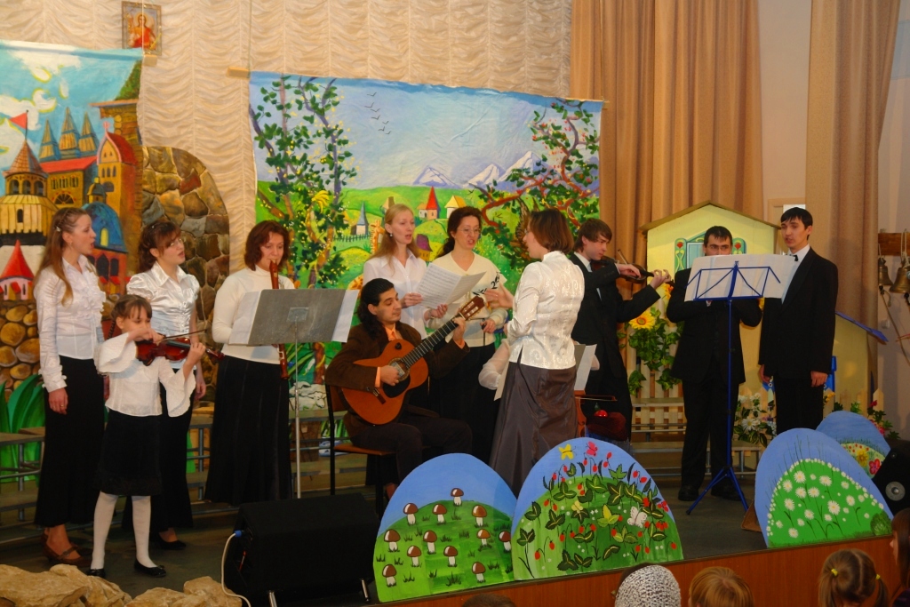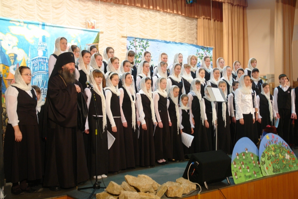 После поздравлений певчие хора показали зрителям спектакль «Из Я-града в Ты-град». Это не просто сказка, это путь человеческого сердца от зла к добру, от эгоизма к любви. Этот путь проходит мальчик – Упрямец, встречая девочку Тишину.