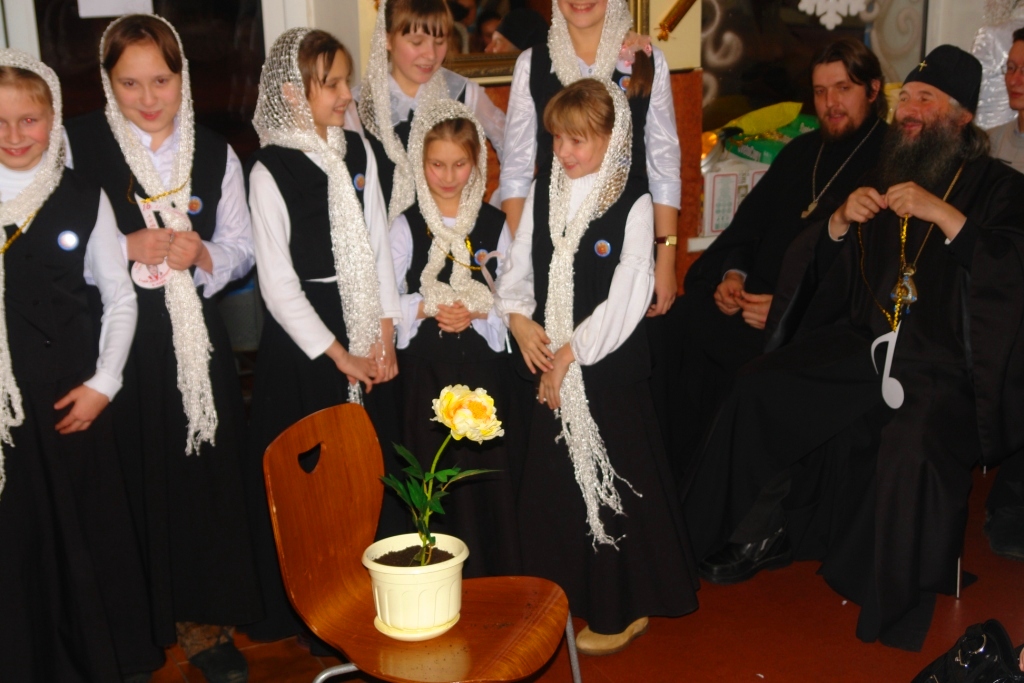 В 14.00 в домовом храме епархиального управления Владыка отслужен молебен с акафистом иконе Божией Матери «Троеручица», в котором приняли участие и хор храма святой мученицы Татианы, а также гости столицы – детский хор храма прп. Сергия Радонежского г. Казань. В 16.00 в большом зале школы искусств им П.И. Чайковского прошел концерт, где выступили именинники и его гости: хор Троицкого храма и воспитанники «Теплого дома» Йошкар-Олы.