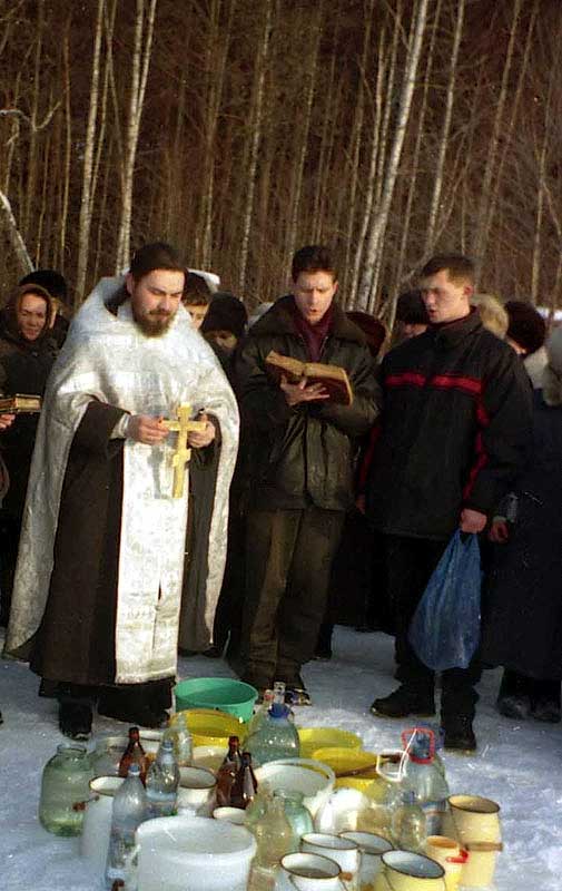 В этот раз день выдался солнечный, морозный, что прибавляло праздничного настроения собравшимся. Здесь, вдали от храма, для многих это единственная возможность получить святую воду, приобщиться великому событию, которое празднует Святая Церковь в день Богоявления. Стройно и уверенно пел хор, звонко раздавались в морозном воздухе слова молитвы: «Сам убо Человеколюбче Царю, прииди и ныне наитием Святаго Твоего Духа, и освяти воду сию». Вот опускается в ледяную воду горящий на солнце золотом святой крест и над озером звучит тропарь праздника: «Во Иордане крещающуся Тебе, Господи». Освящение завершилось, молящиеся прикладываются ко кресту и запасаются святой водой, а самые смелые затем отправляются к проруби, чтобы искупаться в освященных водах озера — во исцеление души и тела.