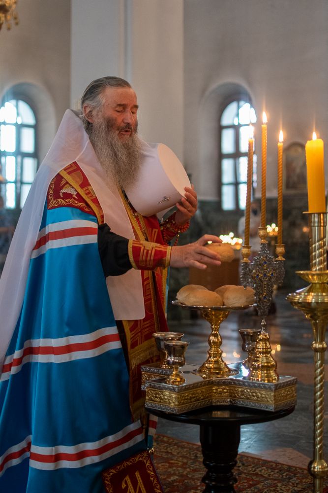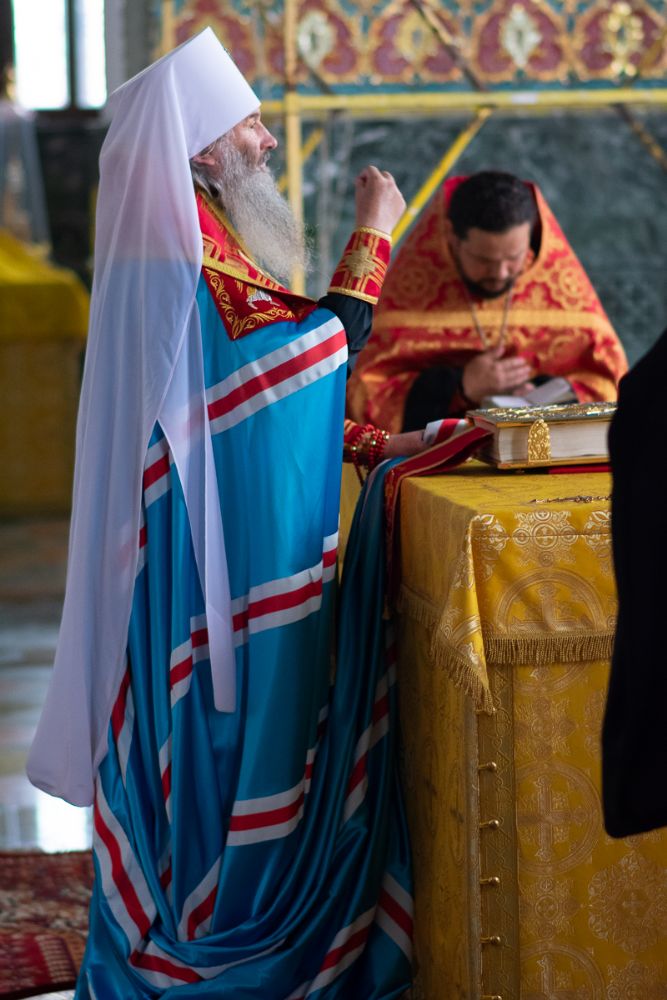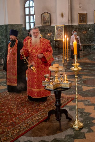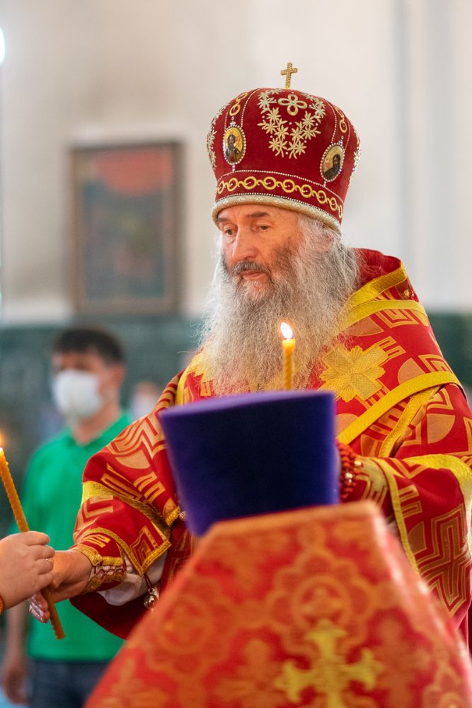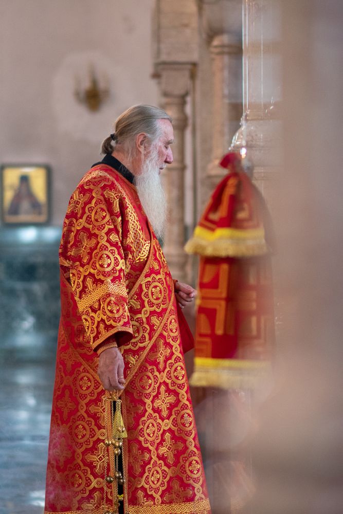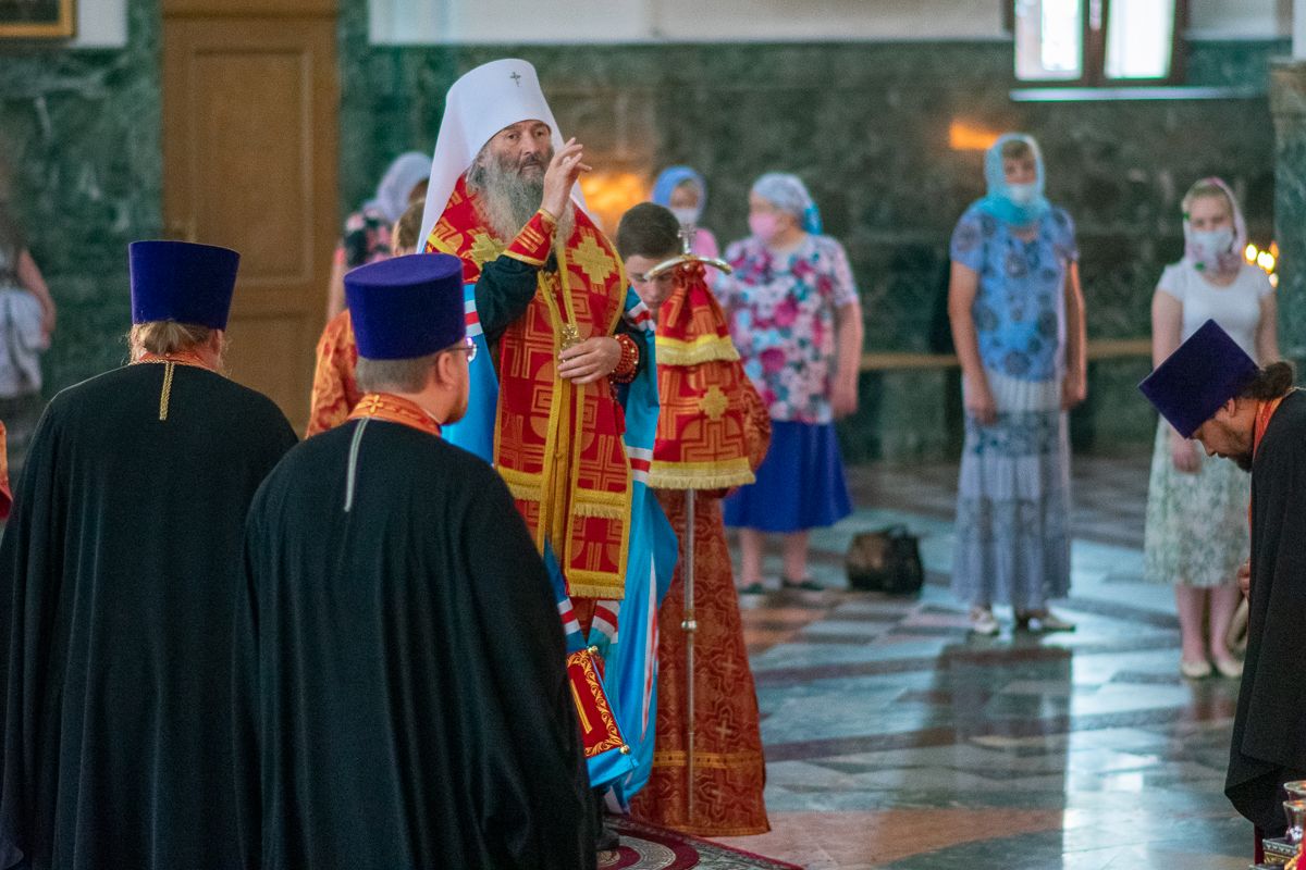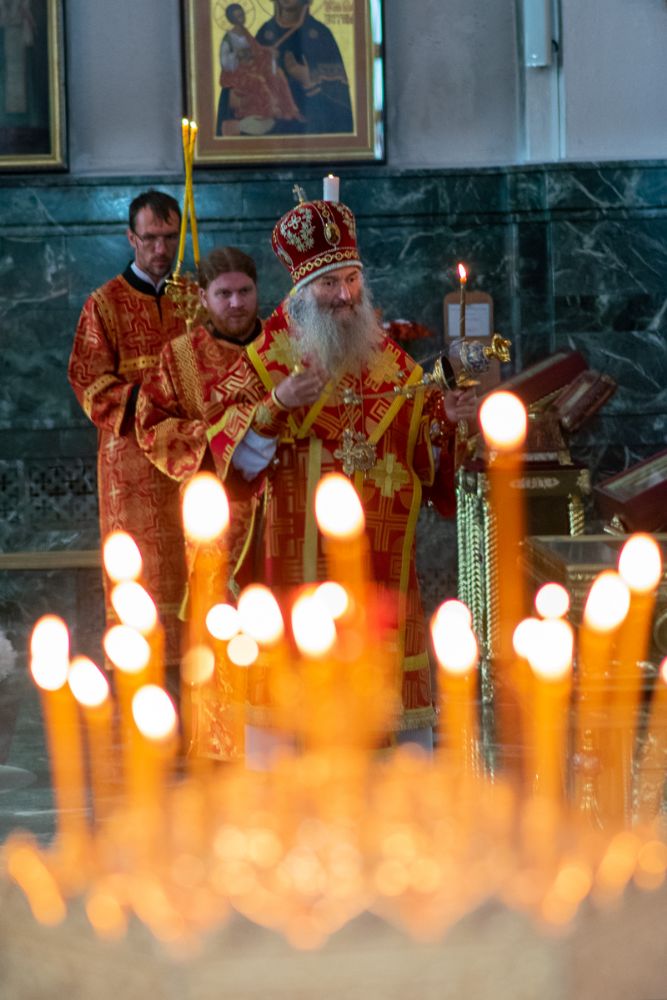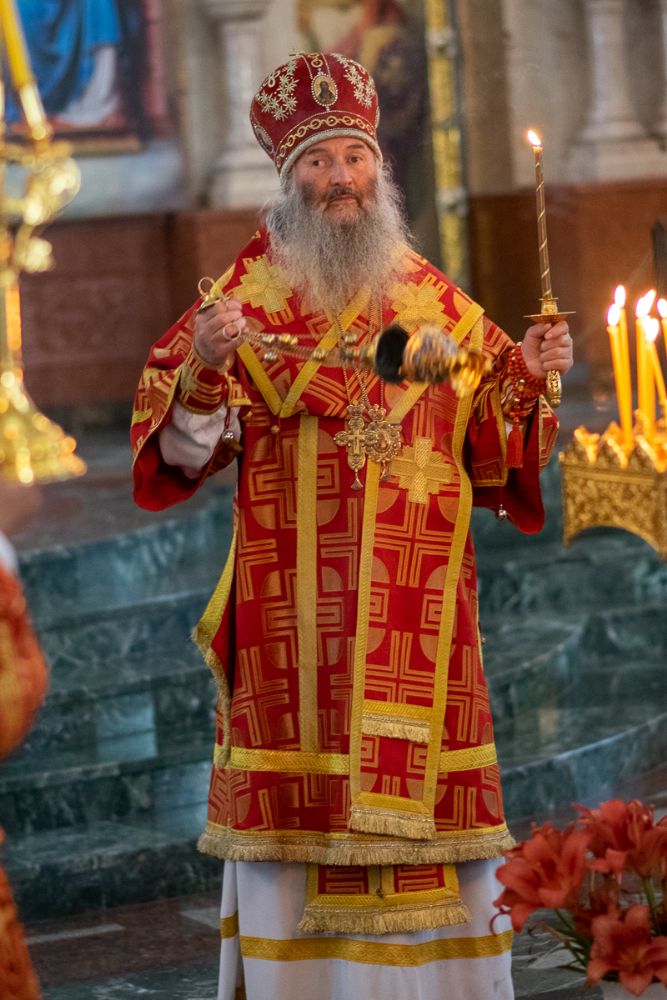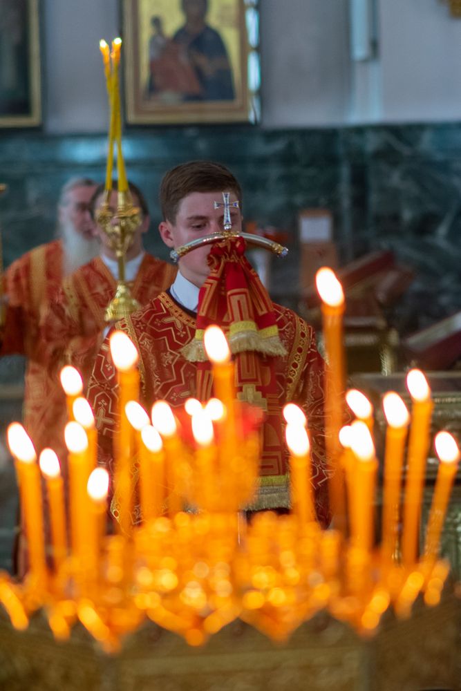 Владыке сослужили ключарь собора протоиерей Сергий Поглазов, клирики собора иереи Никифор Захаров, Артемий Промович, диаконы Андрей Дружинин, Игорь Коваль и клирик храма Рождества Пресвятой Богородицы протодиакон Михаил Козловский. Песнопения исполнял хор под руководством регента Татьяны Черновой.