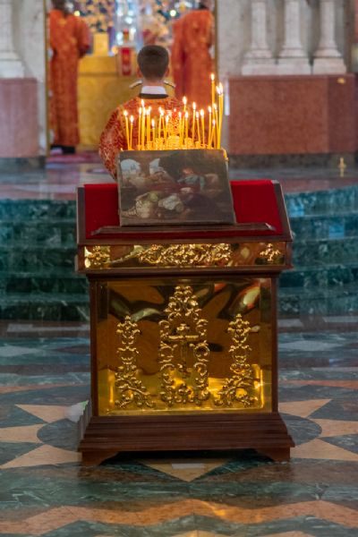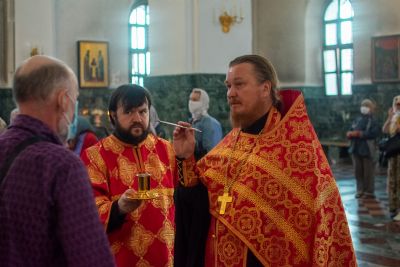 В соответствии с санитарными требованиями, прихожане находились в храме в медицинских масках, соблюдали социальную дистанцию, иконы обрабатывались дезинфицирующим средством.