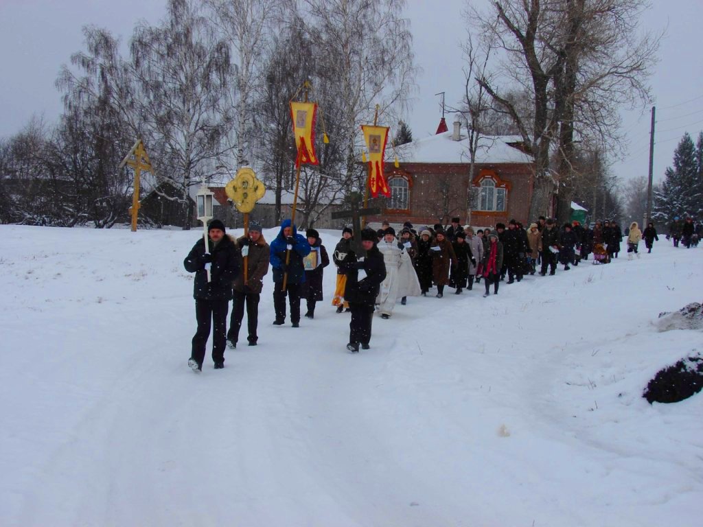 Торжественно служилась Божественная литургия и совершался чин освящения воды. После богослужения прихожане в сопровождении батюшки Николая Барсукова с праздничными песнопениями и окроплением народа святой водой крестным ходом вышли на берег Волги к «иорданской» купели.