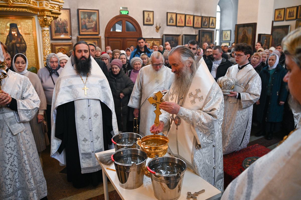 Его Преосвященству сослужили клирики собора: иерей Сергий Першаков, диакон Иоанн Захаров, диакон Андрей Легостаев. За богослужением пел архиерейский хор.