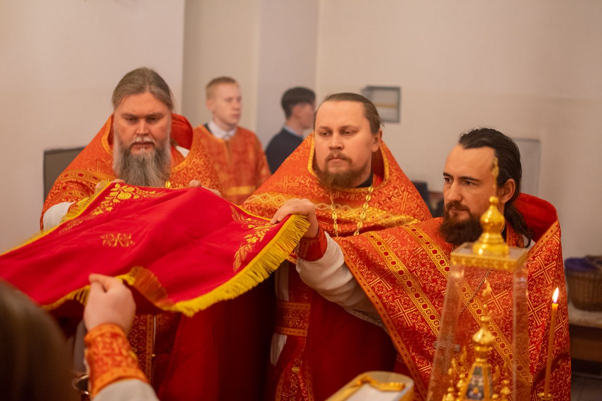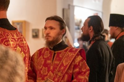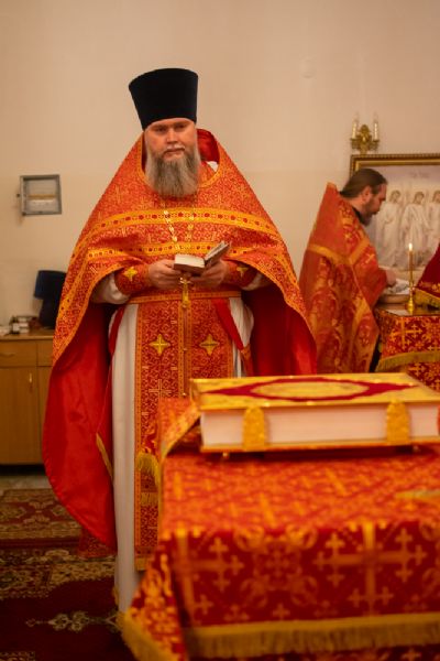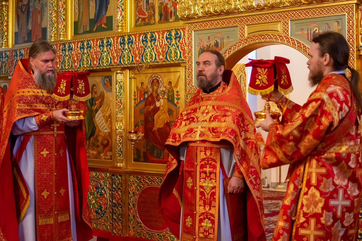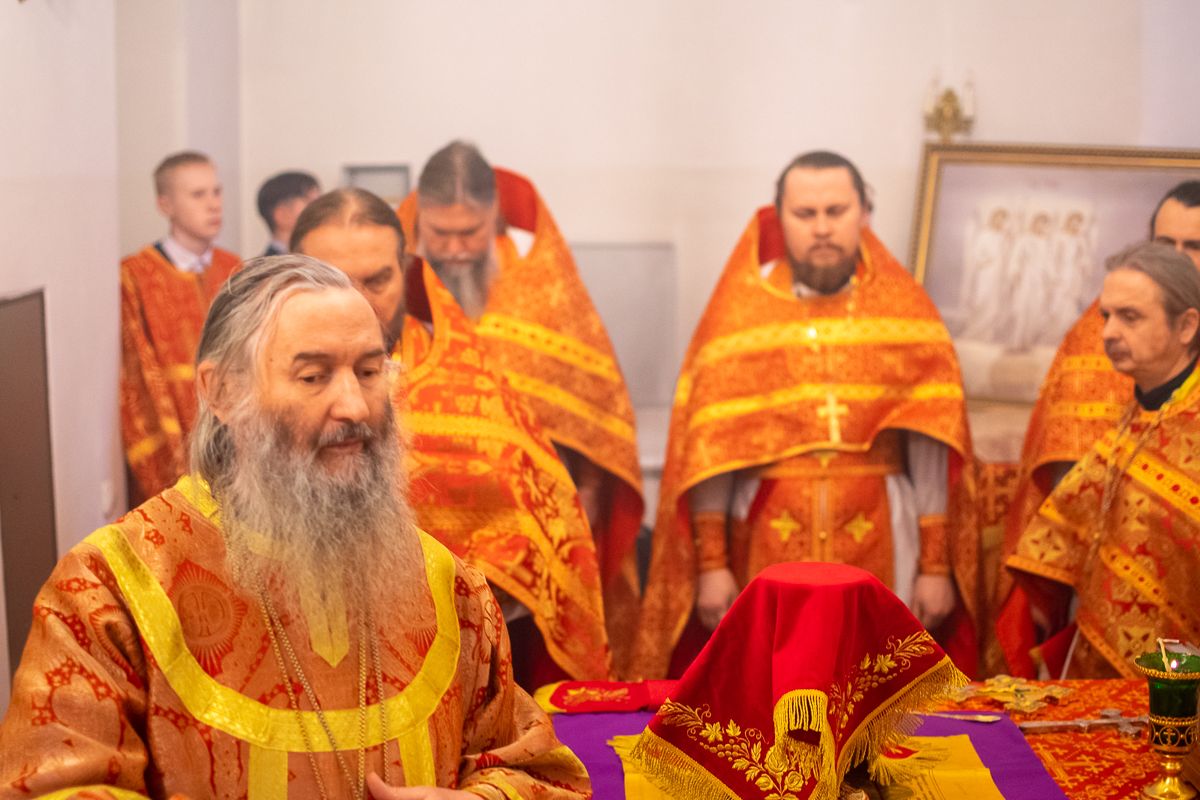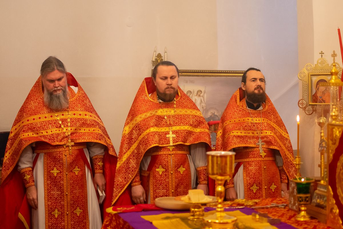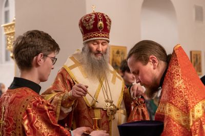 За Литургией архипастырю сослужили секретарь Йошкар-Олинского епархиального управления иеромонах Серафим (Пасанаев), настоятель Серафимовского храма протоиерей Александр Бачурин, клирики храма протоиерей Василий Лихачев, иереи Константин Домрачев, Виктор Умрихин, Николай Бабич, диакон Димитрий Лукьянов и клирик храма Рождества Пресвятой Богородицы с. Семеновка протодиакон Михаил Козловский. Песнопения исполнял хор под управлением регента Елены Умрихиной.