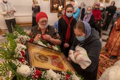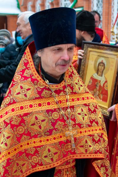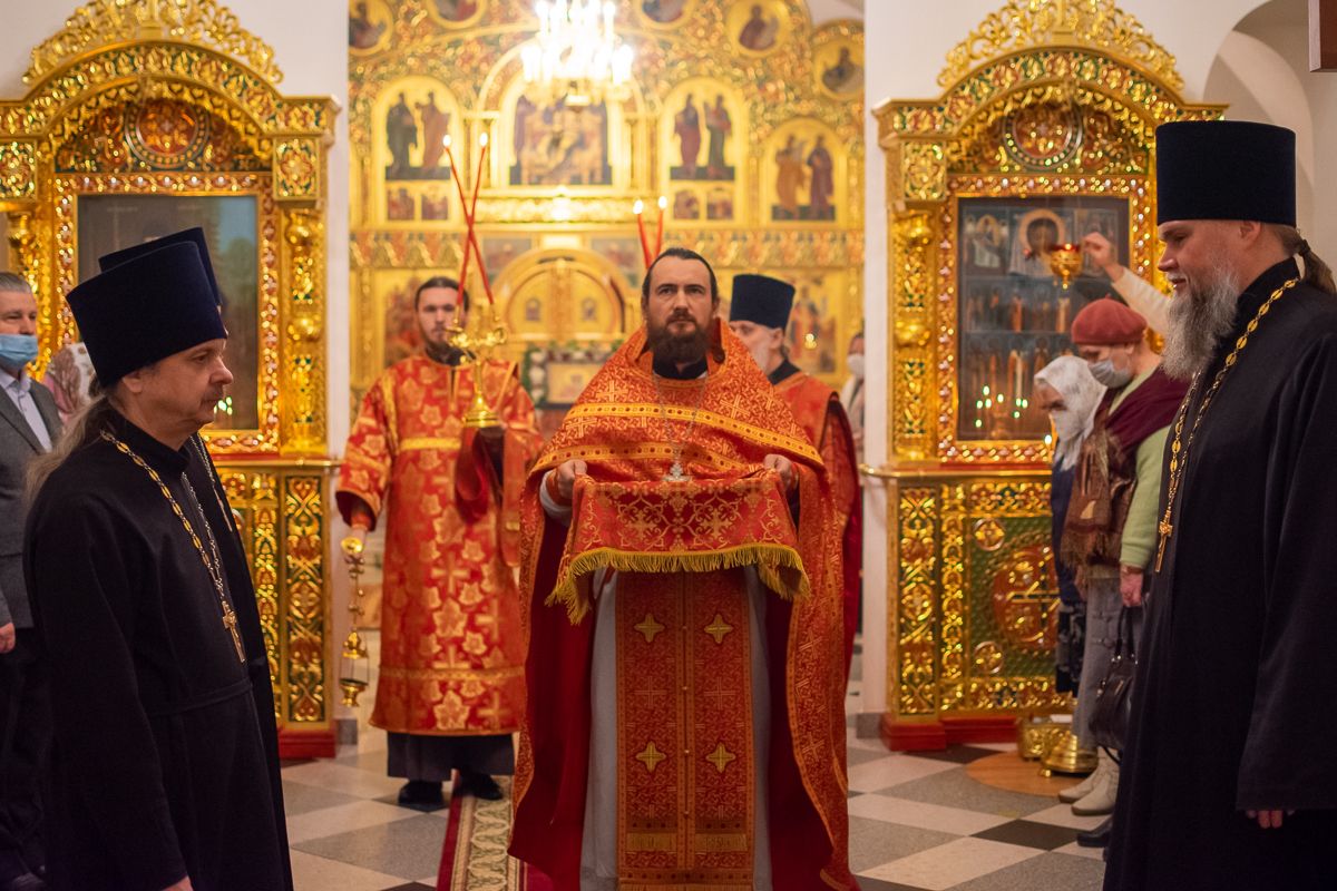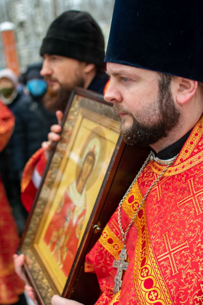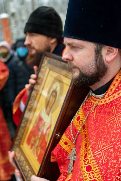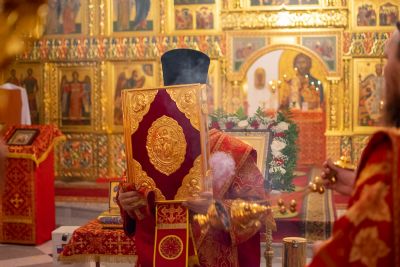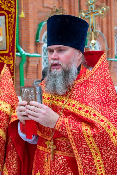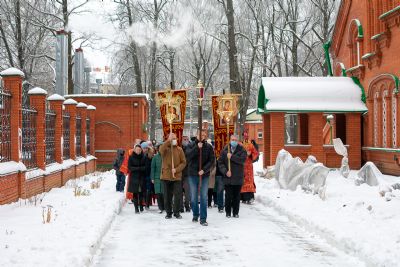 После Литургии по традиции престольных праздников был совершен крестный ход вокруг храма со чтением Евангелия и кроплением святой водой.