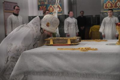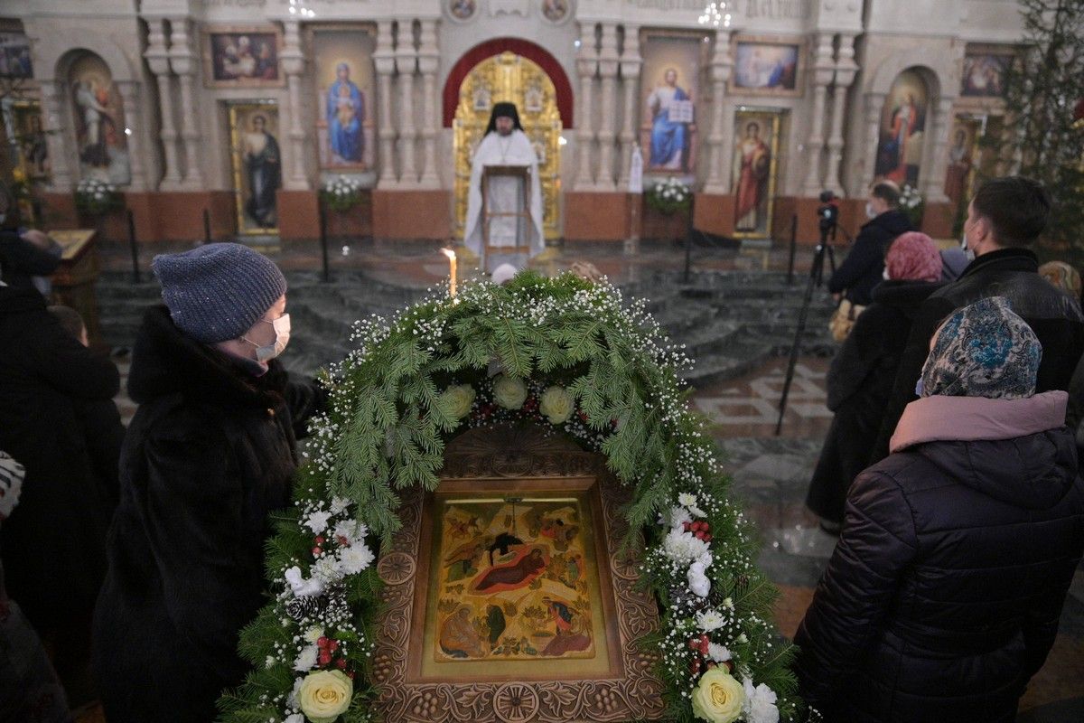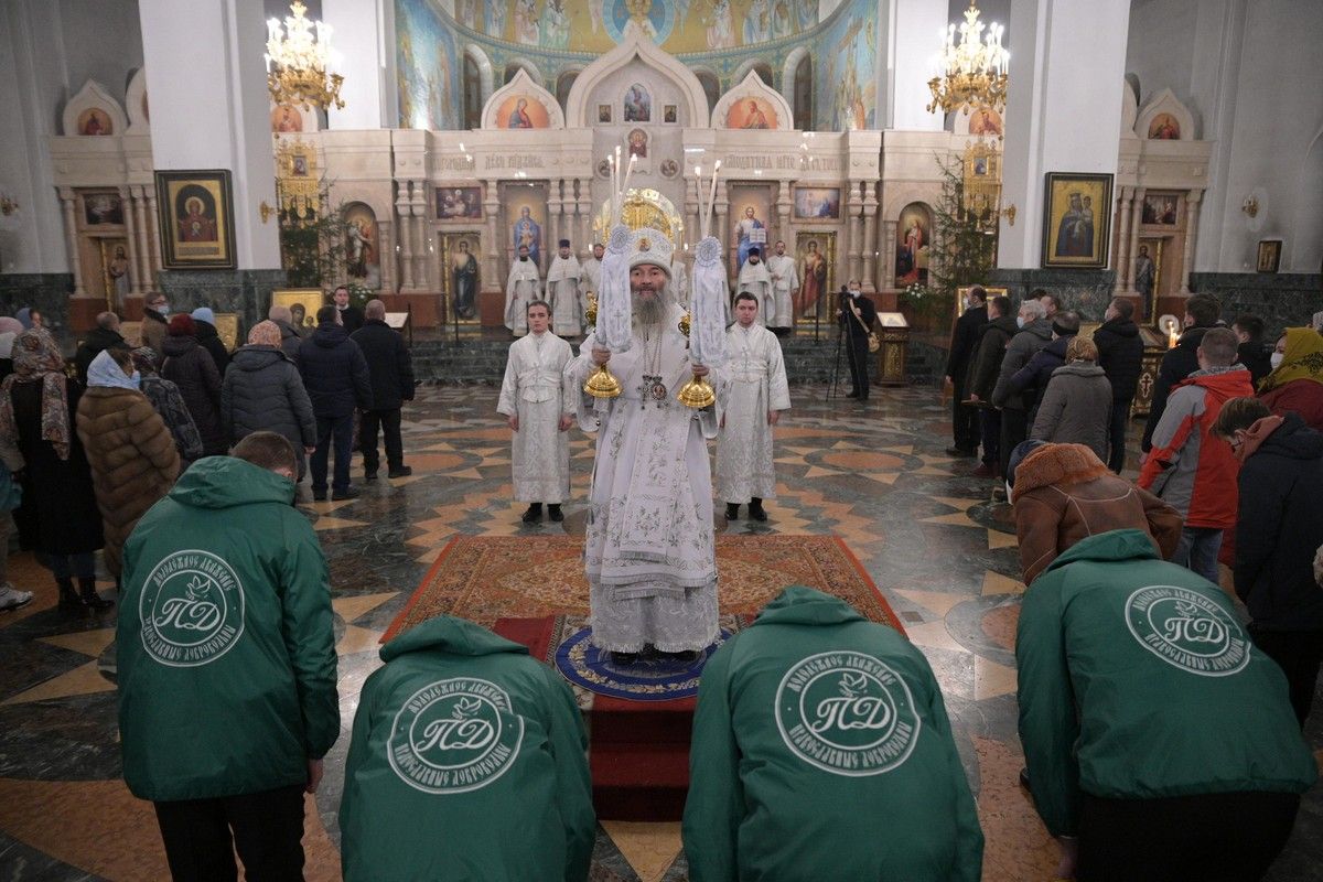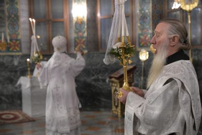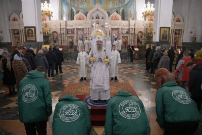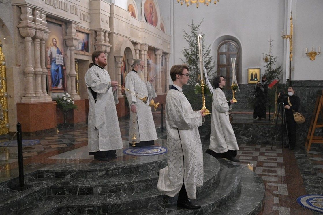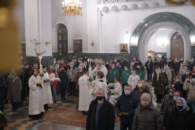 7 января в 2 часа ночи митрополит Йошкар-Олинский и Марийский Иоанн возглавил праздничную утреню и Божественную литургию в Благовещенском кафедральном соборе.