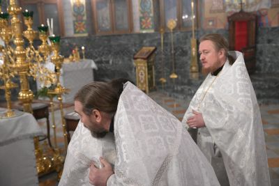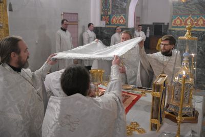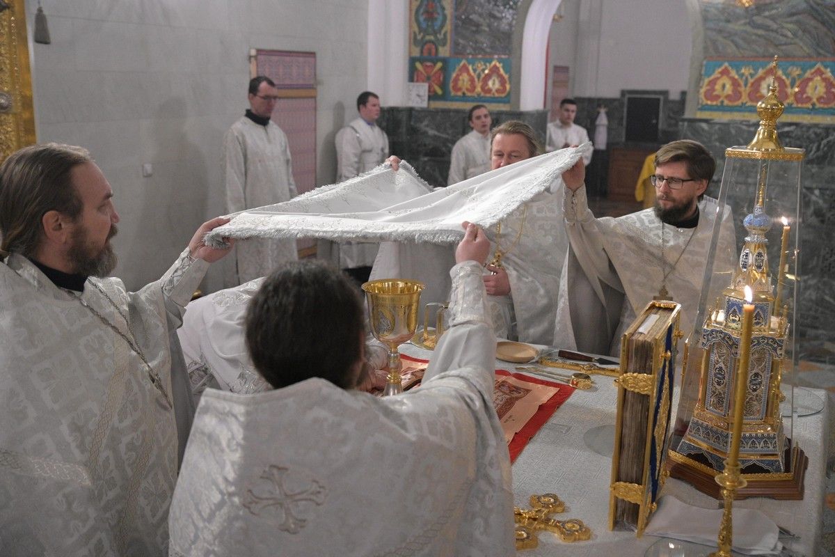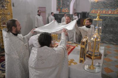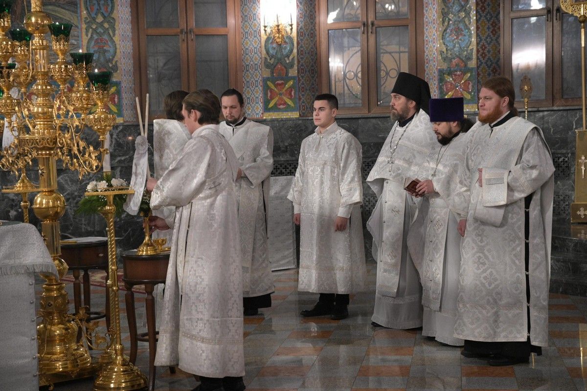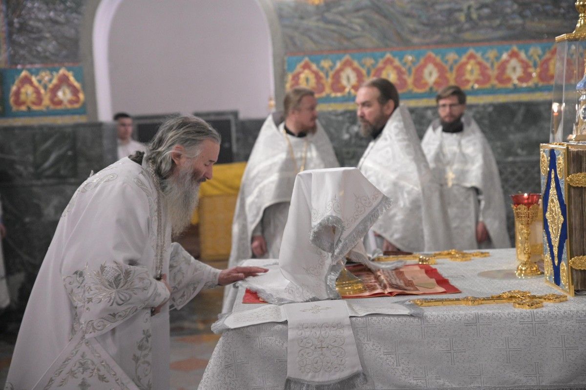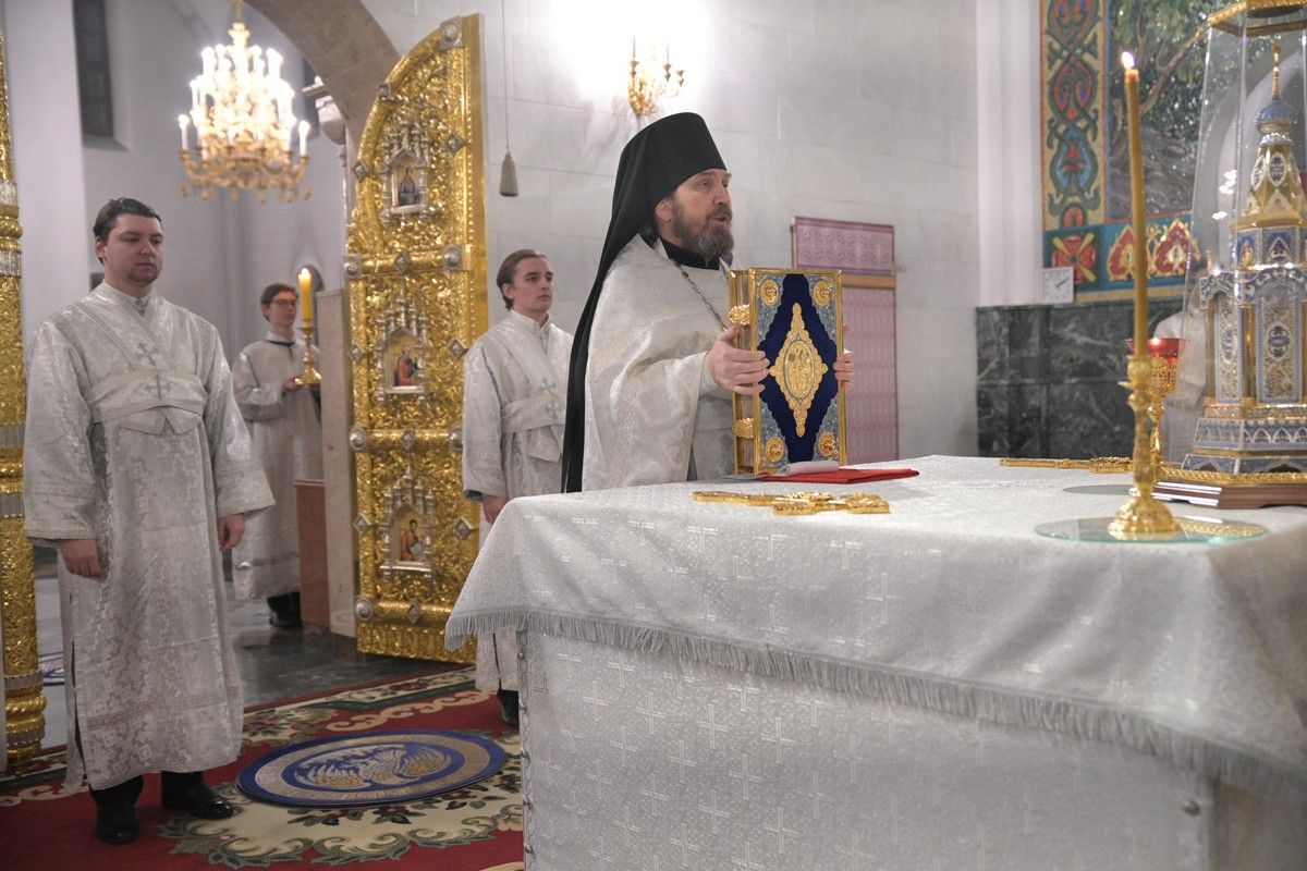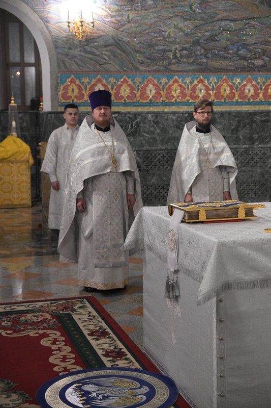 Владыке сослужили секретарь Йошкар-Олинского епархиального управления иеромонах Серафим (Пасанаев), ключарь собора протоиерей Сергий Поглазов, клирики собора иереи Никифор Захаров, Евгений Самойлов, диаконы Андрей Дружинин, Игорь Коваль и клирик храма Рождества Пресвятой Богородицы с. Семеновка протодиакон Михаил Козловский.
