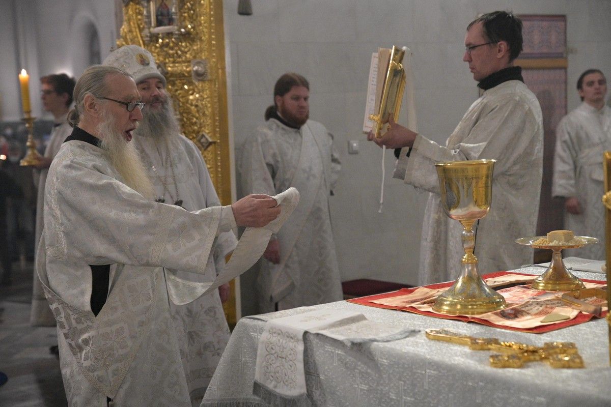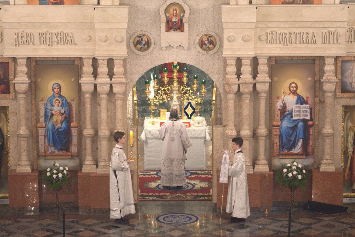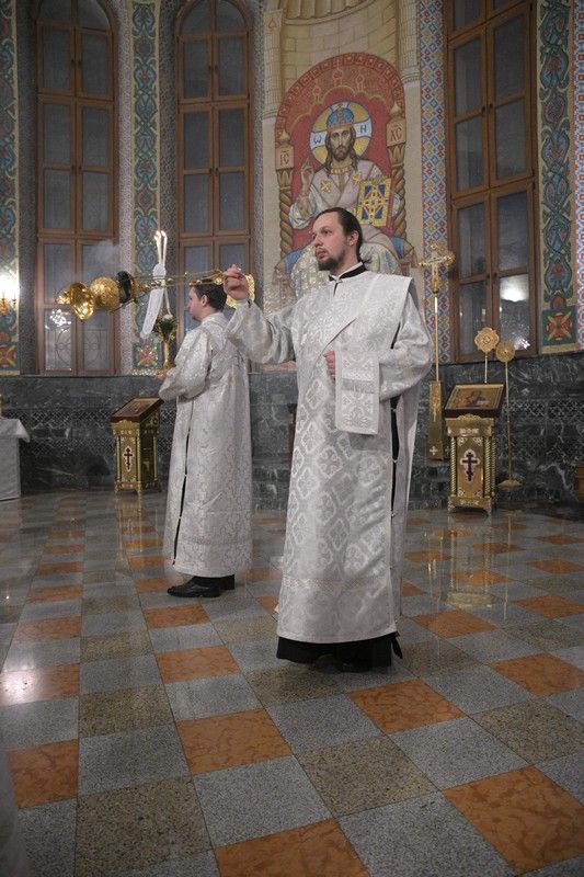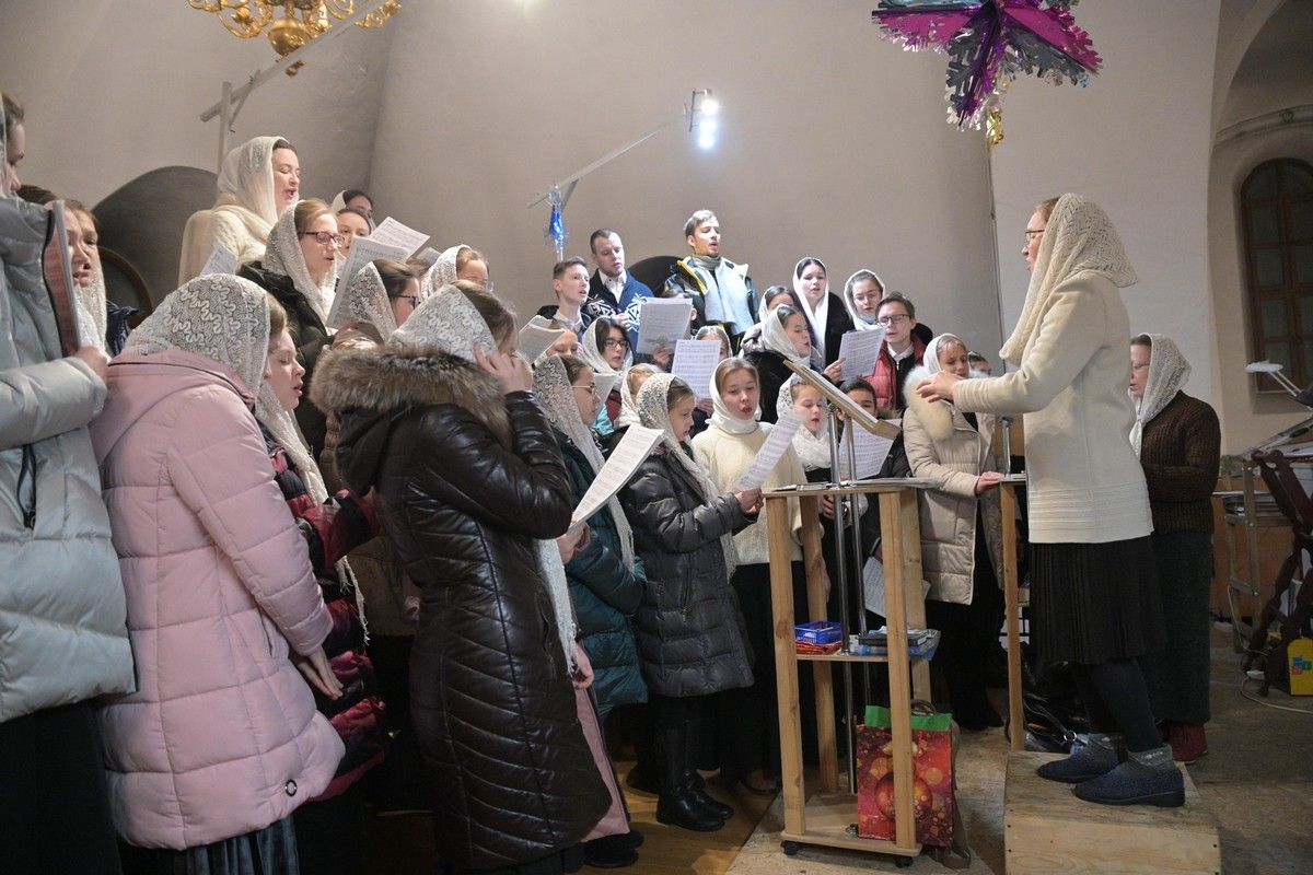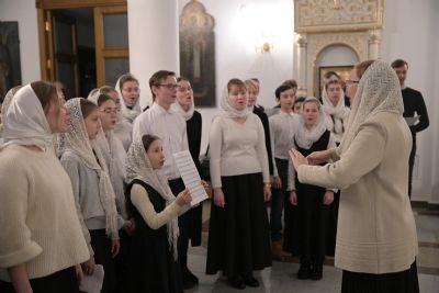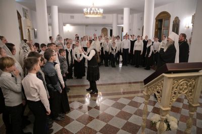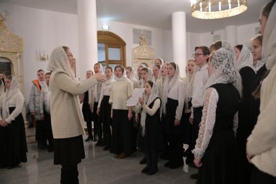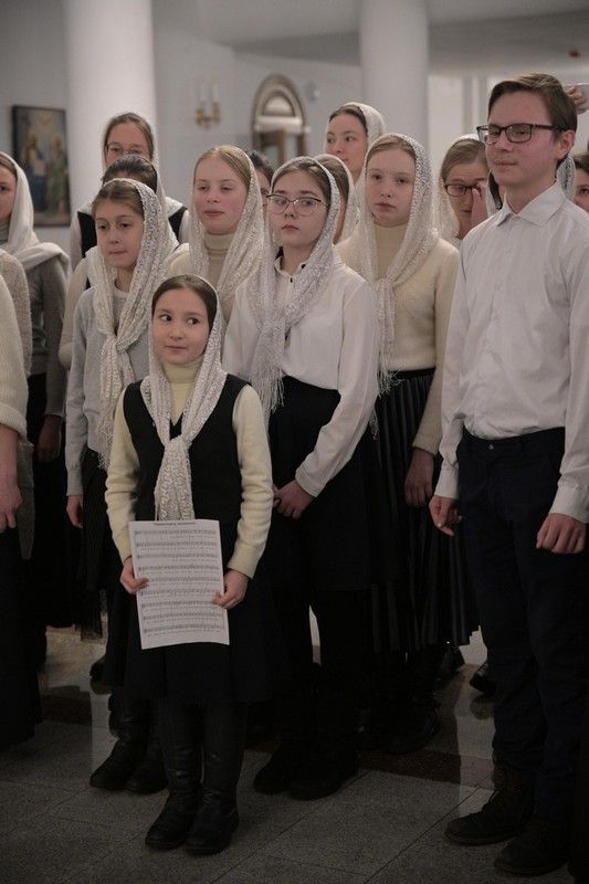 Песнопения исполняли младшая и старшая группы хора «Благовест» под руководством регентов Татьяны Черновой и Надежды Поздеевой. Для глухих и слабослышащих богослужебные песнопения и тексты переводил на жестовый язык сурдопереводчик Михаил Виногоров.