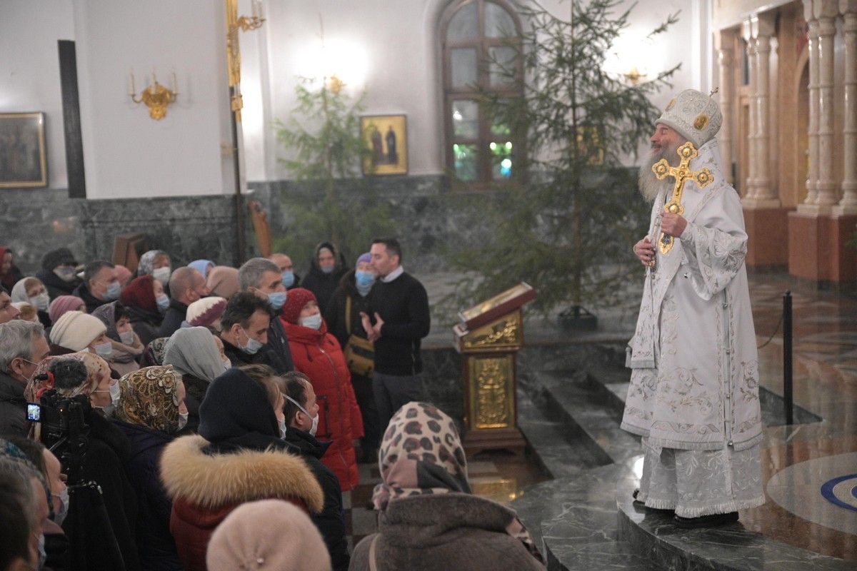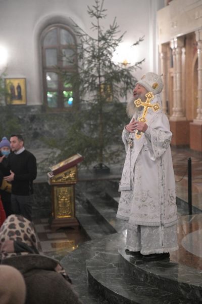 По окончании Литургии митрополит Иоанн обратился к собравшимся с архипастырским словом: «Велика и священна Рождественская ночь – ночь, которая открывает нам тайну рождения Спасителя мира. Царь царей рождается в убогом вертепе, полагается в скотские ясли. Люди, ожидающие тысячелетиями пришествия Мессии, не могли и представить, что Он так смирится до такого состояния… Но Господь есть Любовь, и ради любви к человеку Он принял образ последнего раба.