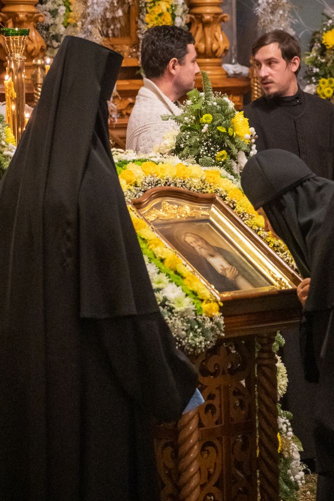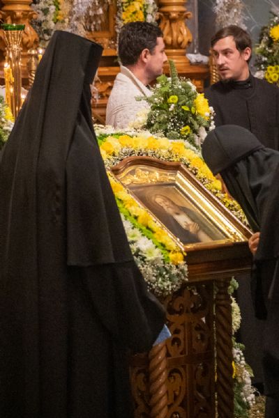 Глава Нижегородской митрополии поздравил всех с днем памяти преподобного Серафима Саровского и поблагодарил игумению Сергию за труды по возрождения обители. «К батюшке Серафиму — великому светильнику благочестия притекают люди со всей России и других стран, дальних и ближних, — сказал он. — Почему? Ведь он был таким же, как мы с вами, — человеком из плоти и крови, со своими страстями и скорбями. Но этот пустынник и молитвенник пошел по пути святых отцов — постом и молитвой он очистил душу свою от греха, и в этот чистый сосуд вошла благодать Духа Святаго. В 1903 году произошло прославление Саровского чудотворца, а затем наступили годы богоборчества, когда зло вошло в души людей и начали попираться святыни. Преподобный предупреждал об этом. Но он говорил и о том, что наступит пора духовного возрождения. Преподобный Серафим Саровский — это драгоценная жемчужина святости, неиссякаемой источник, из которого мы черпаем силы идти по пути, угодному Богу, чтобы стяжать мирный дух, благодаря которому, по слову батюшки, «вокруг тебя спасутся тысячи», чтобы затем достичь тихой пристани — Небесного Царствия. Преподобный отче наш Серафим, моли Бога о нас!»