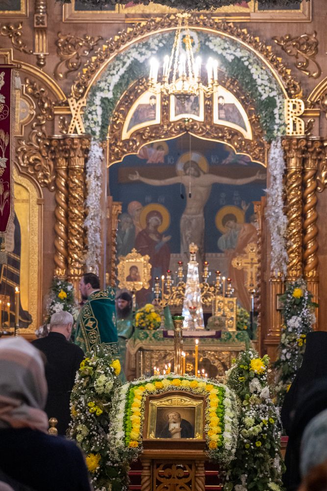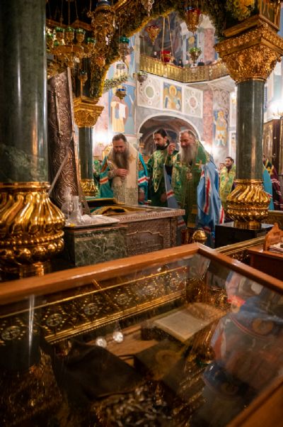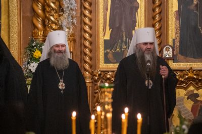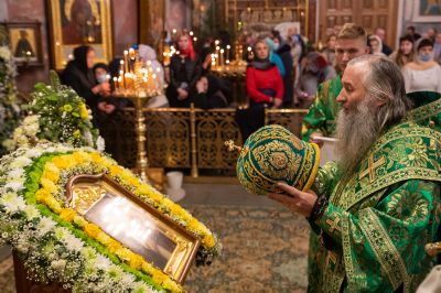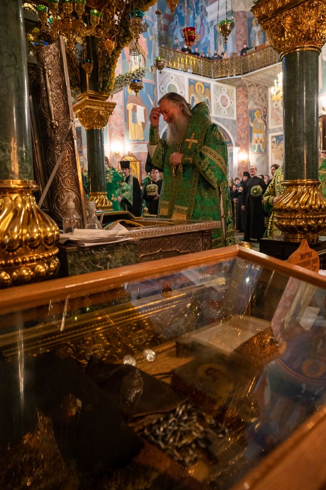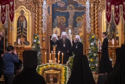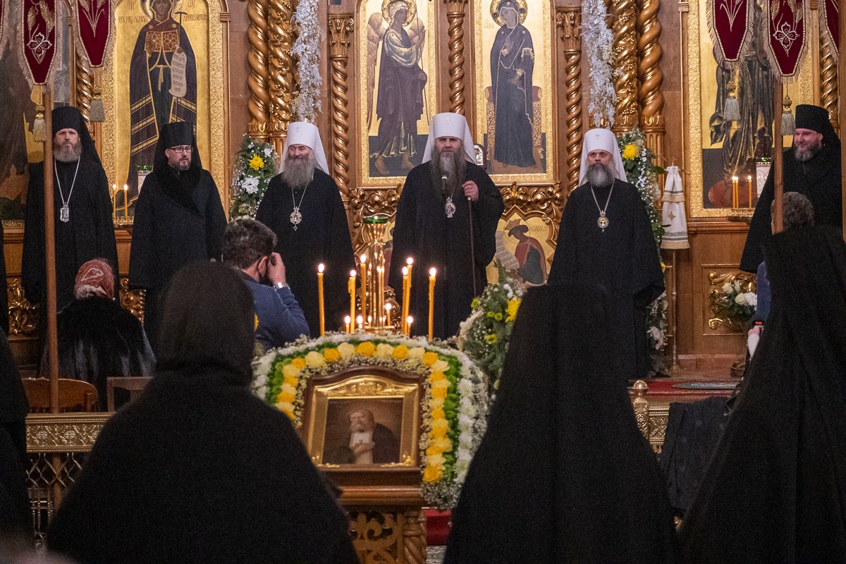 По окончании Литургии настоятельница Дивеевского монастыря игумения Сергия (Конкова) поблагодарила архипастырей за совершенное богослужение в день 188-летия со дня кончины преподобного Серафима Саровского. «Было пророчество преподобного о том, что он своей плотью будет почивать в Дивееве, а не в Сарове. В годы земной жизни великого угодника Божия это казалось маловероятным, но в наше время пророчество сбылось. В минувшем году исполнилось 30 лет с тех пор, как были вновь обретены святые мощи, изъятые и утерянные в годы богоборчества и прибывшие потом всероссийских крестным ходом в нашу обитель», — отметила она.