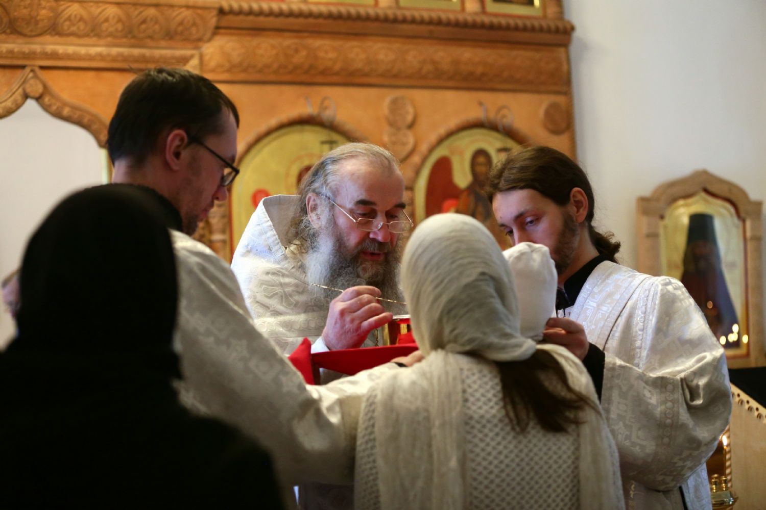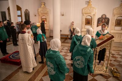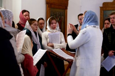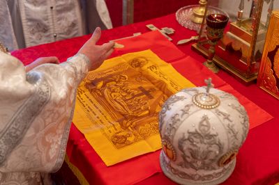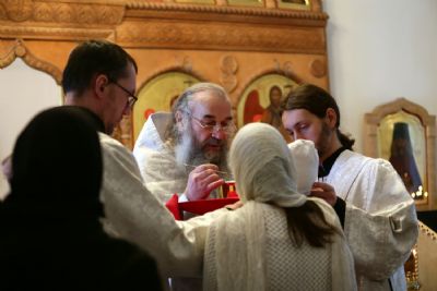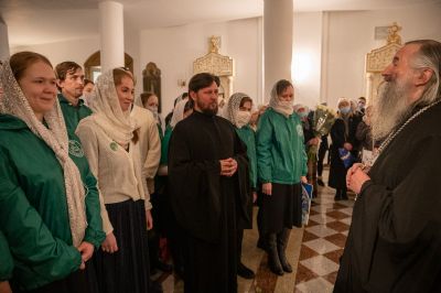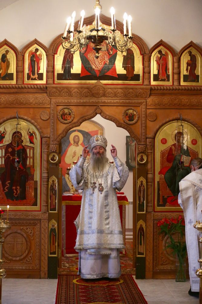 За Литургией в Мироносицком монастыре архипастырю сослужили клирик монастыря иерей Михаил Лежнин и клирик храма Рождества Пресвятой Богородицы с. Семеновка протодиакон Михаил Козловский. Пел детско-юношеский хор «Благовест» под управлением Татьяны Черновой.