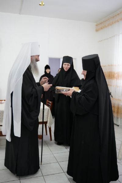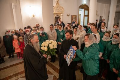После богослужения Владыка вновь принимал теплые поздравления от сестер монастыря и верующих, приехавших разделить с дорогим архипастырем молитвенное общение.