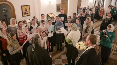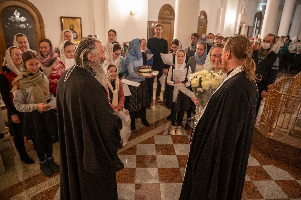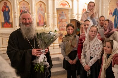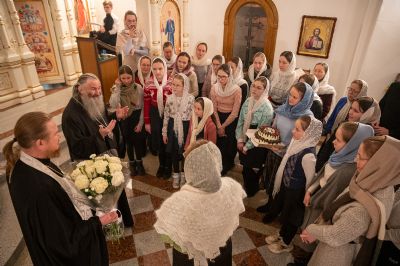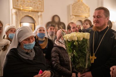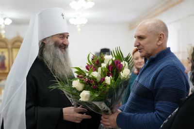 По окончании богослужения митрополита Иоанна поздравила с днем рождения его многочисленная паства: клирики городских храмов, певчие церковных хоров, сестры милосердия, православные добровольцы.