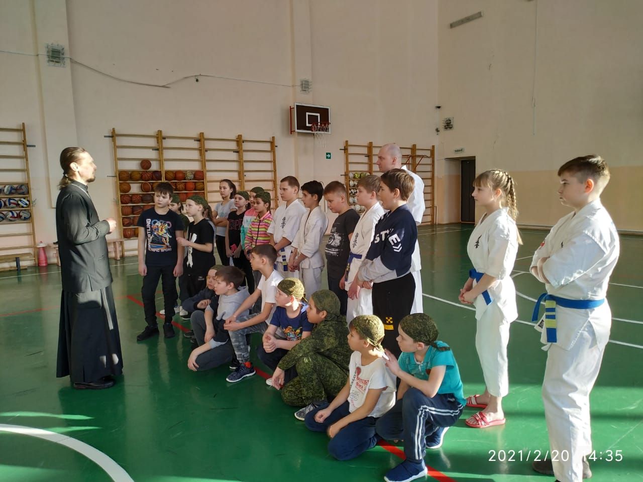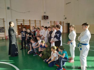В завершение духовник ХКО «Хутор Царевококшайский», клирик Воскресенского собора г. Йошкар-Олы иерей Андрей Кочаков рассказал ребятам о святых русских воинах Александре Невском и Дмитрии Донском, о семейных ценностях, дружбе, долге и любви к Отечеству.