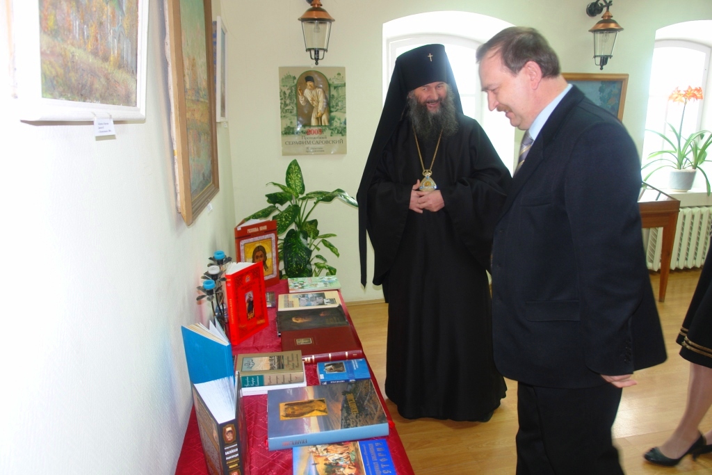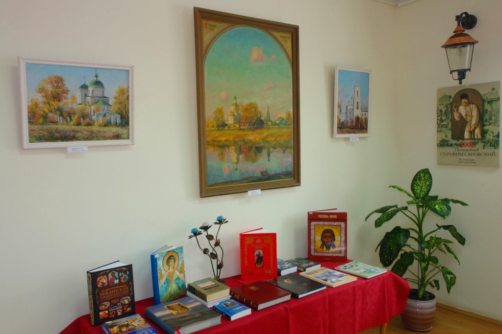 На нескольких стендах представлены книги епархиальной библиотеки. Так как библиотека научная и, в своем роде, универсальная, то издания редкие, много старинных. Особо пристальное внимание житиям святых отцов, многие из которых изданы лишь в последнее время. Немало книг богато иллюстрированных.