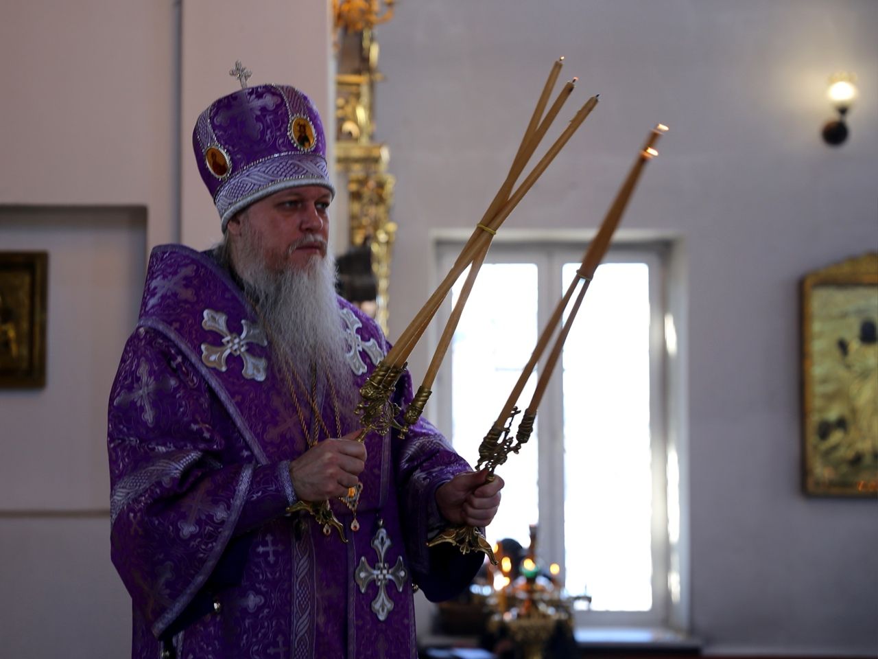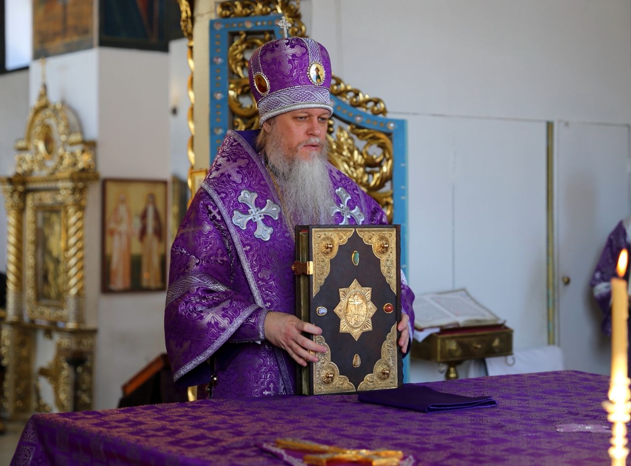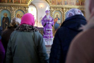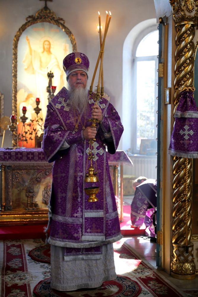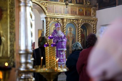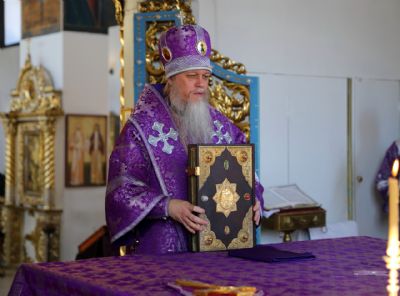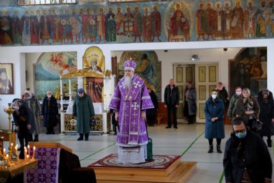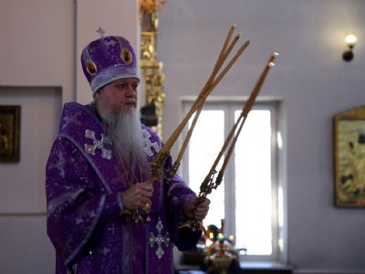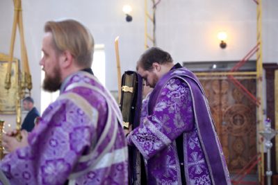 Его Преосвященству сослужили клирики кафедрального собора. Песнопения исполнял архиерейский хор.