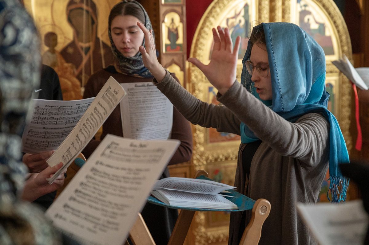 «Предварительно на спевках обычно проходятся сложные места при пении партитур, разбираются какие-либо особенности предстоящей службы. А также раздаются чтения, к которым певчие самостоятельно готовятся, – поделилась Екатерина Жирова. – В хоре есть старшие уставщики, которые контролируют этот процесс, – они могут дополнительно встречаться с певчими и помогать разбирать текст и порядок чтения, если у певчего возникают какие-либо сложности. Младшие регенты также готовятся к практике – дополнительно встречаются с хористами, полностью пропевают и дирижируют песнопения, чтения.