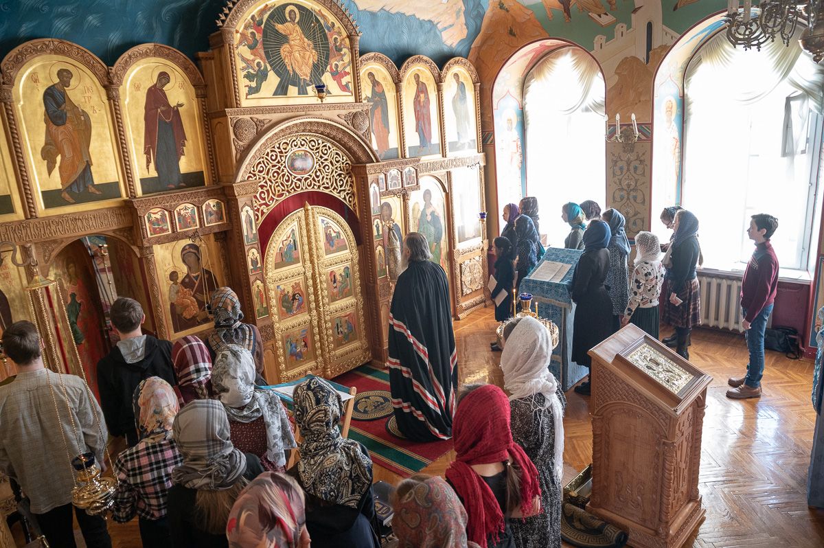 30 марта, накануне дня памяти святителя Кирилла Иерусалимского, митрополит Йошкар-Олинский и Марийский Иоанн возглавил вечернее богослужение в домовом храме Йошкар-Олинского епархиального управления в честь иконы Божией Матери «Троеручица».
