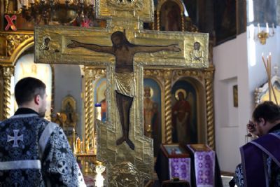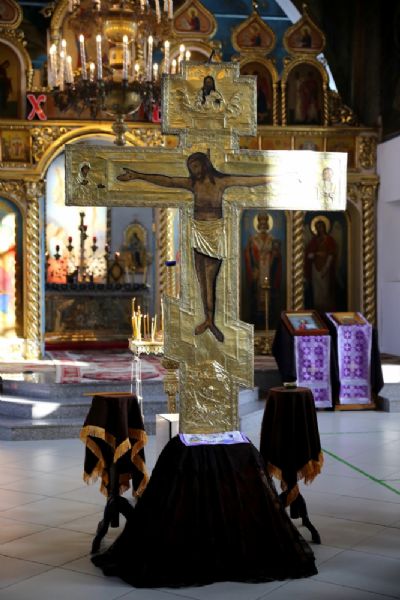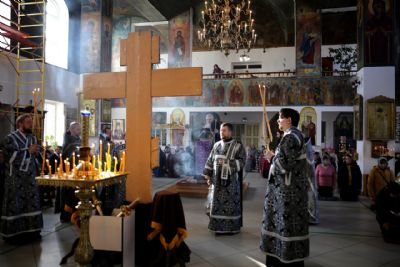 По окончании богослужения владыка Феофан обратился к верующим со словом о прославлении Креста Господа нашего Иисуса Христа в Неделю крестопоклонную и о несении каждым человеком своего жизненного креста.