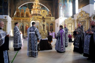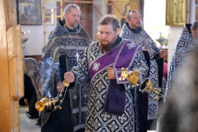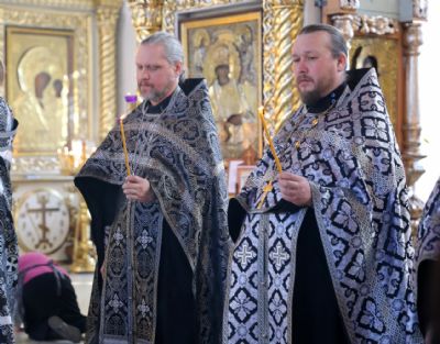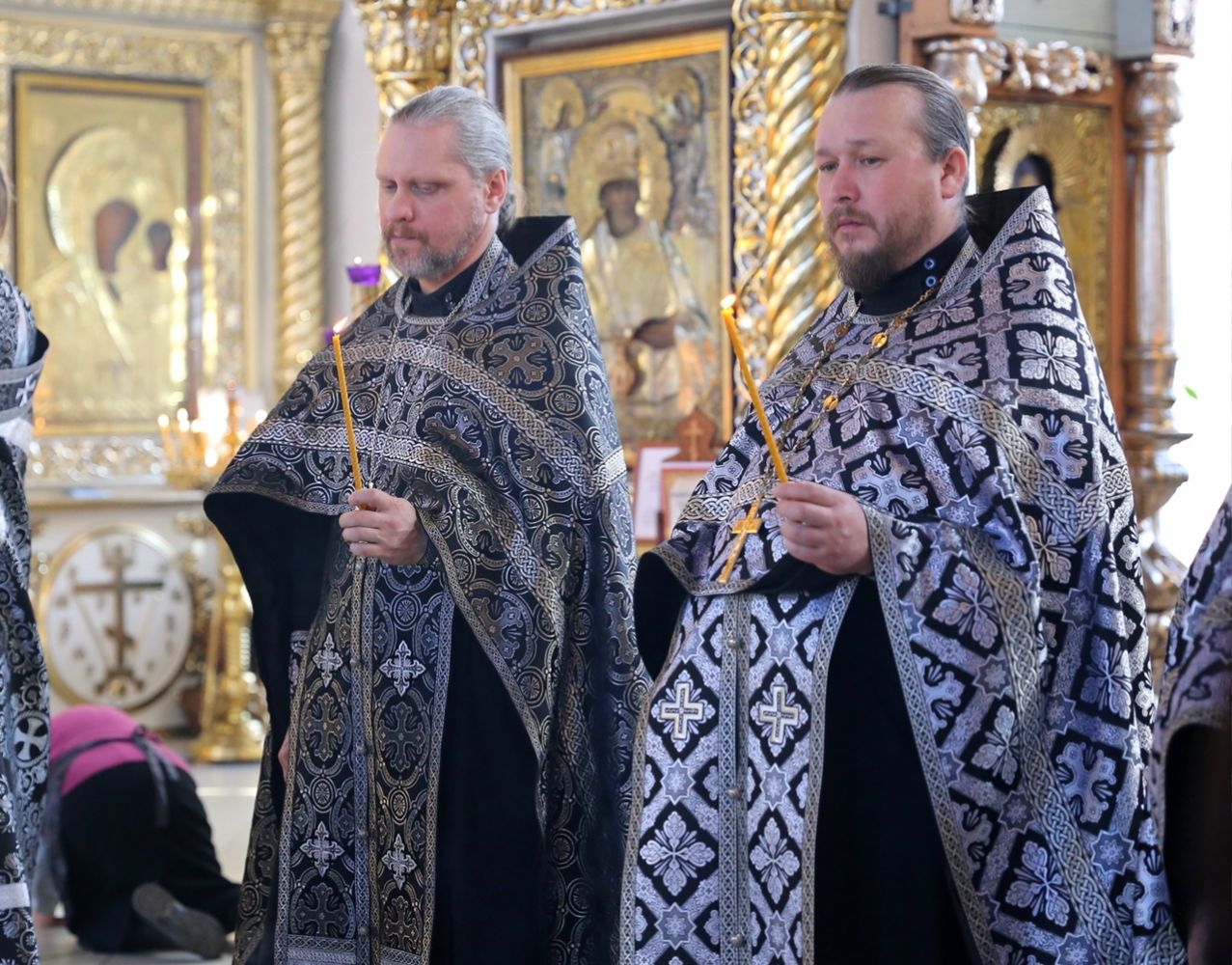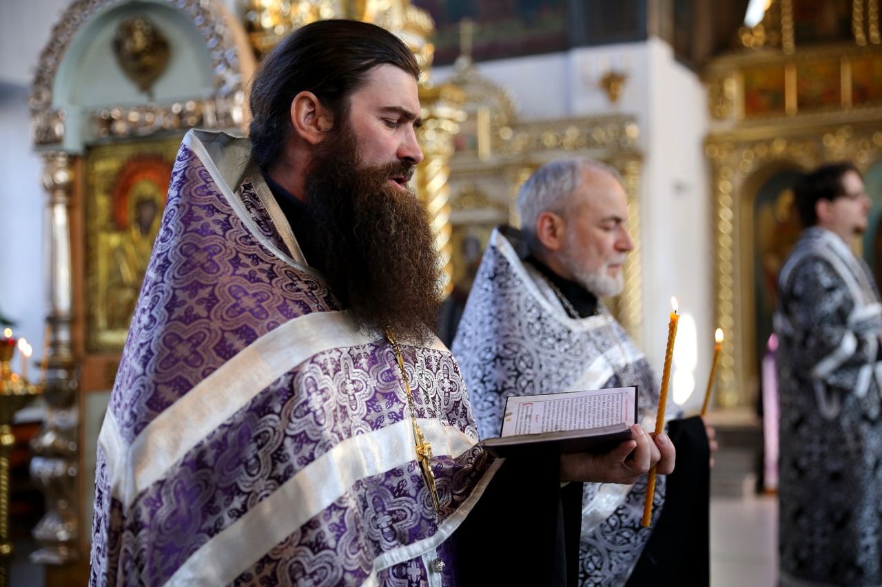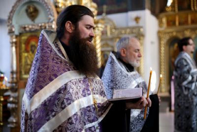 Его Преосвященству сослужили клирики собора. Песнопения исполнял архиерейский хор.