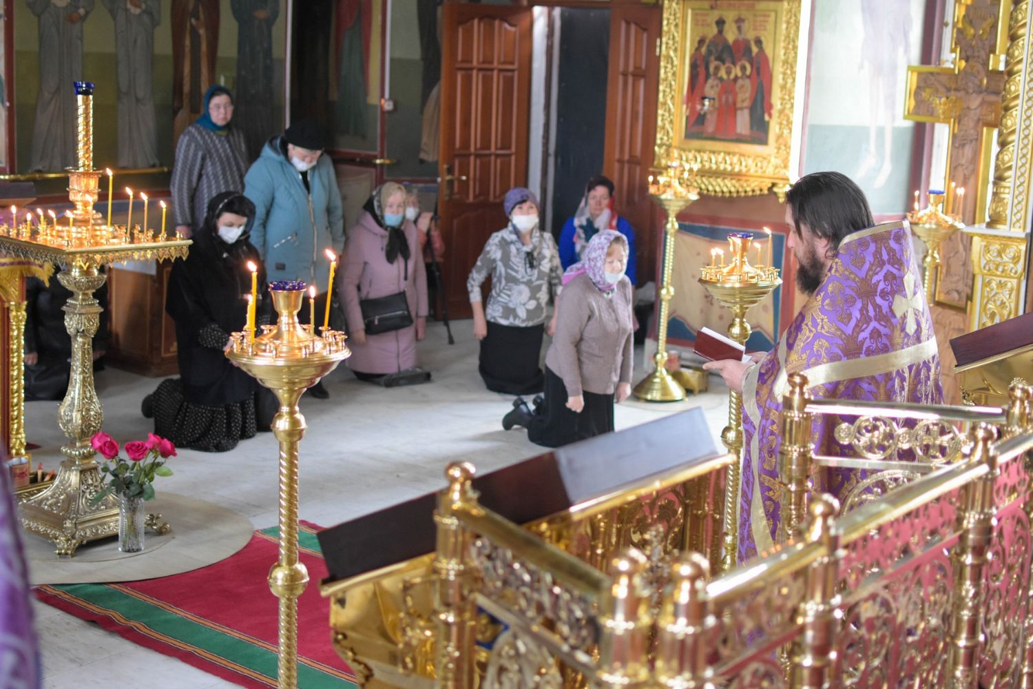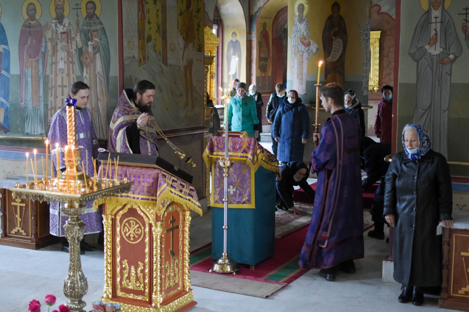 По заамвонной молитве Владыка с сослужащим духовенством последний раз в этом году прочитали молитву Ефрема Сирина с земными поклонами.