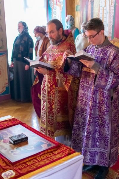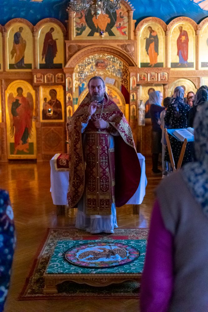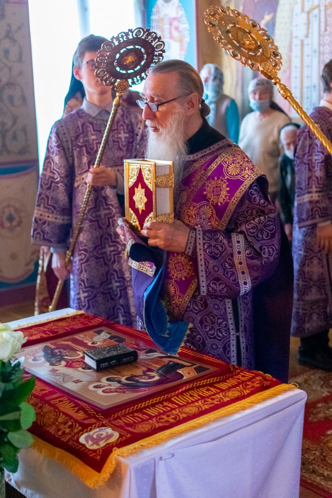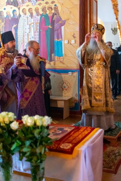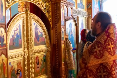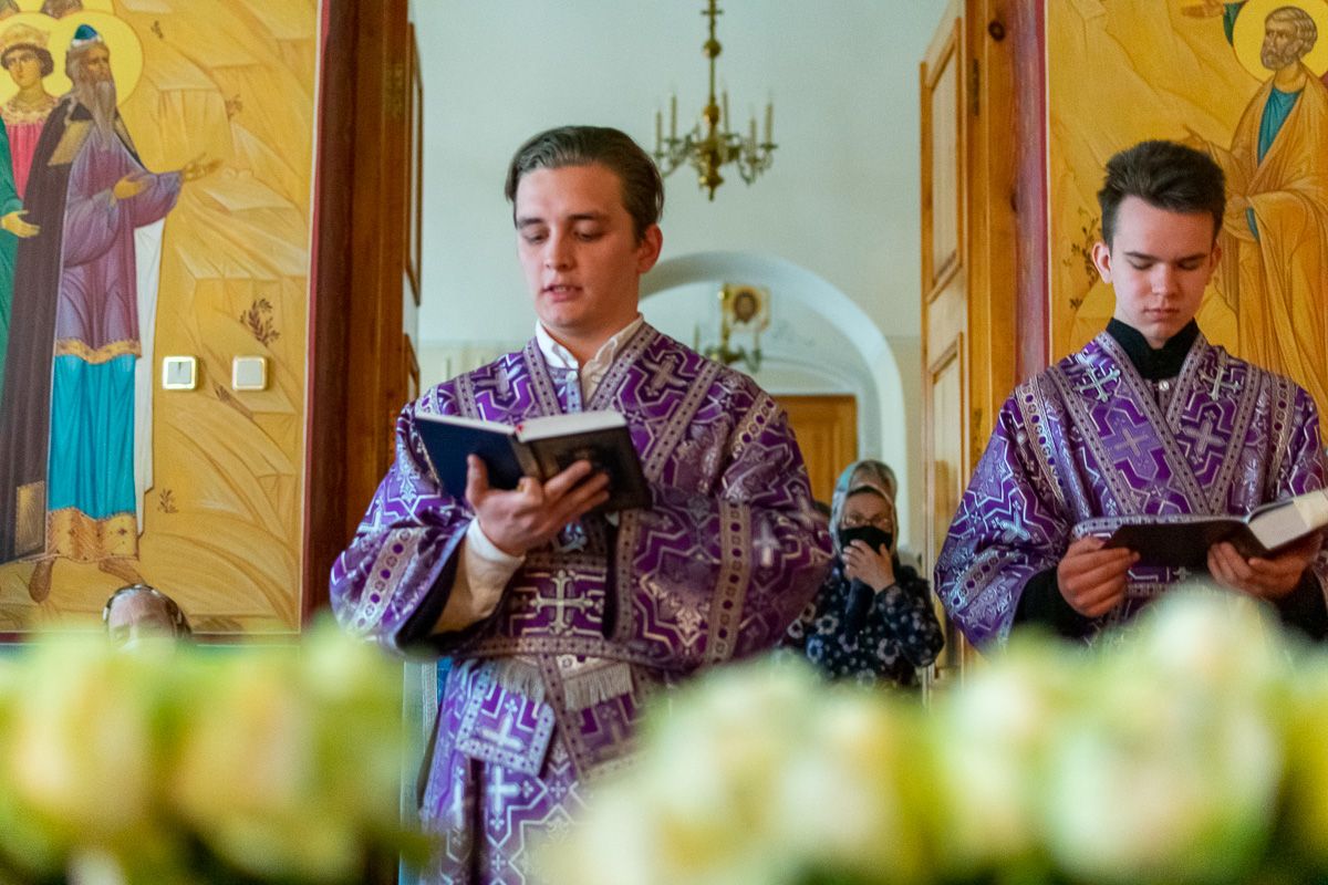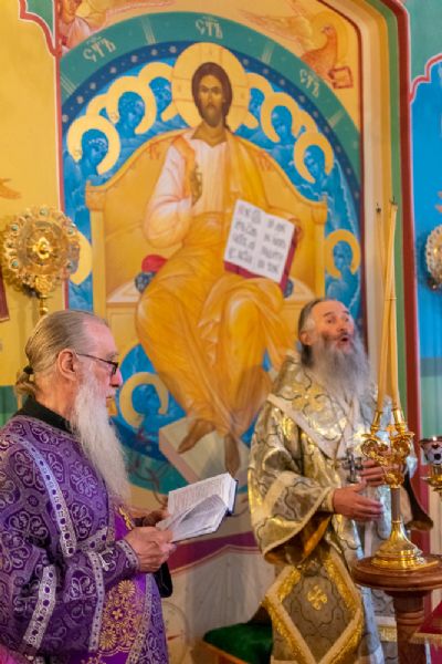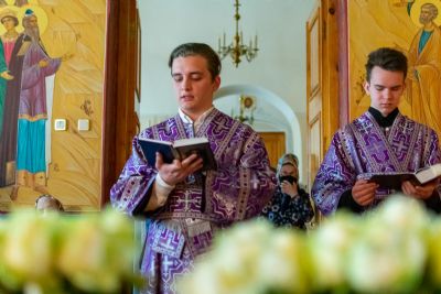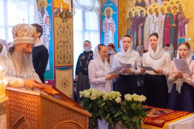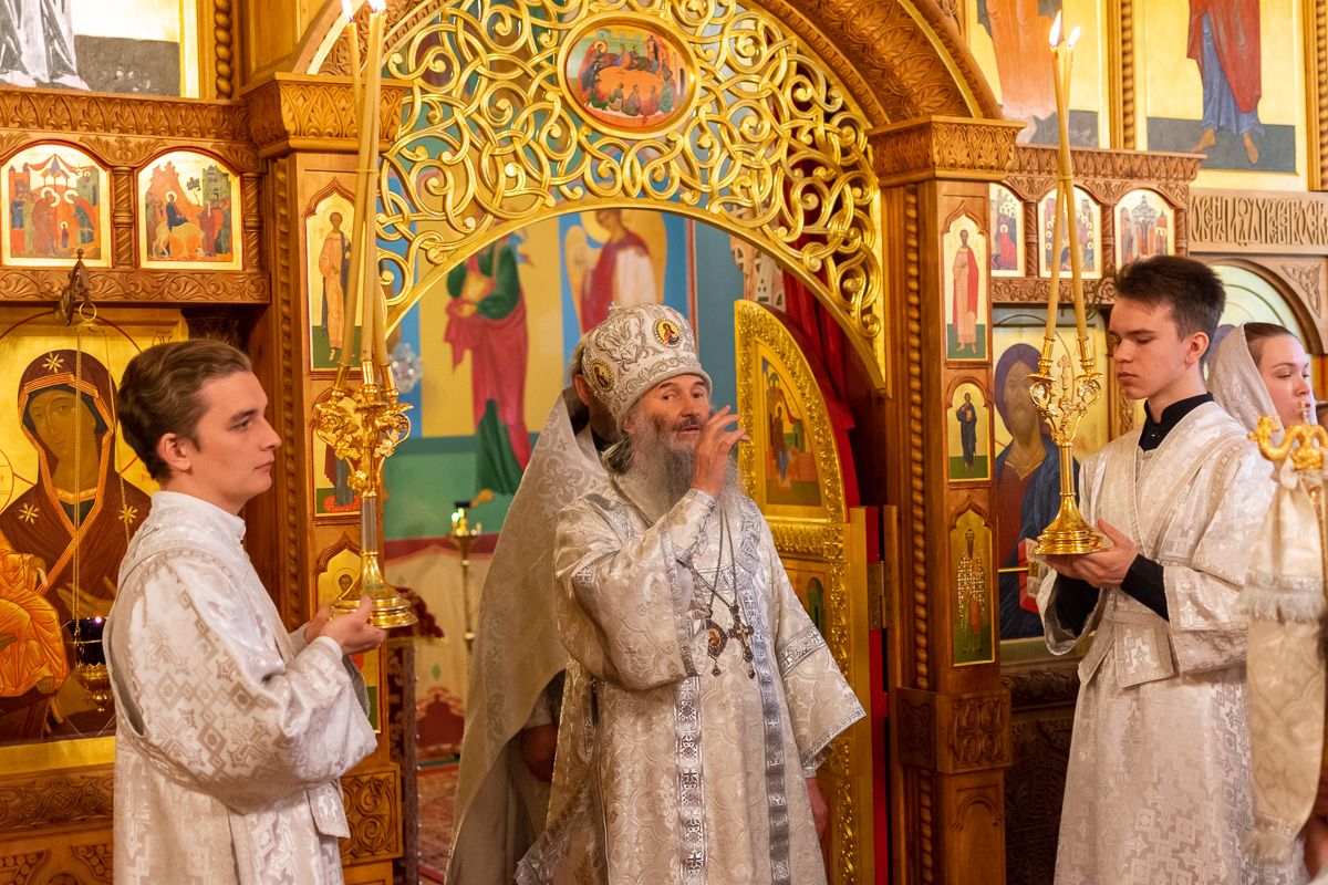 Владыке сослужили секретарь Йошкар-Олинского епархиального управления иеромонах Серафим (Пасанаев) и протодиакон Михаил Козловский. Песнопения исполнял хор под руководством регента Татьяны Черновой.