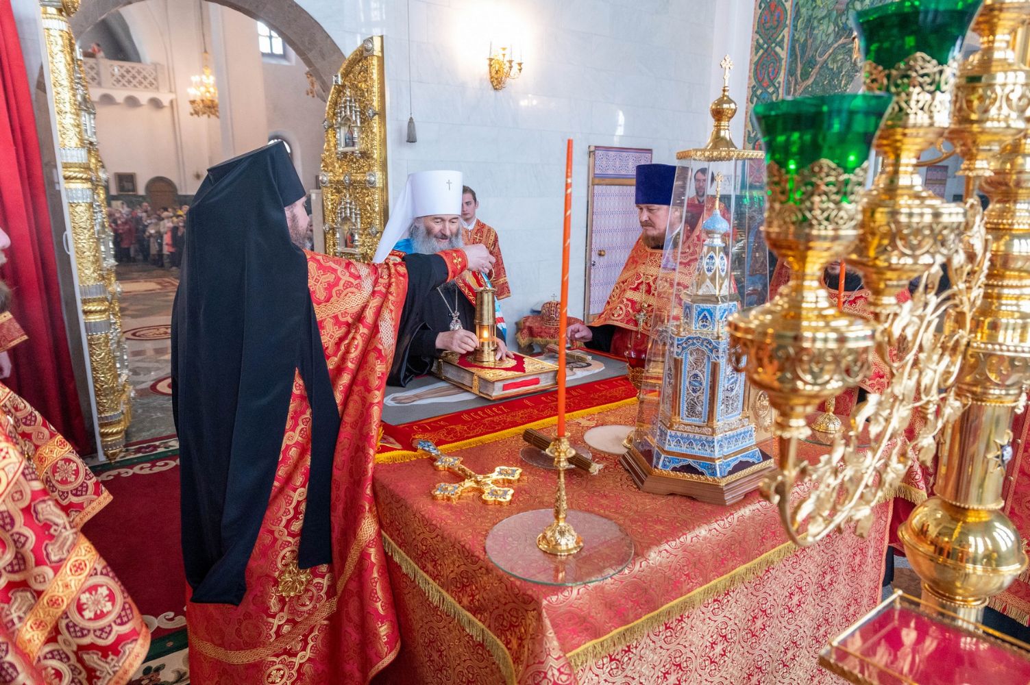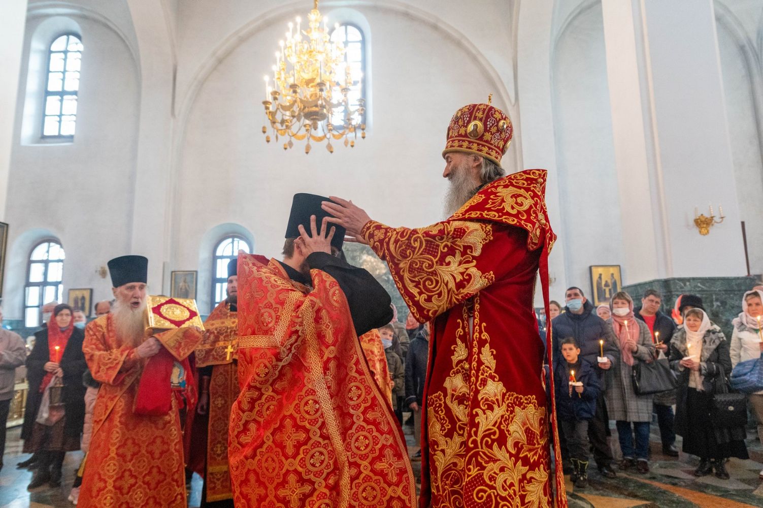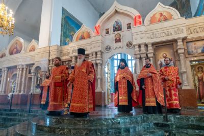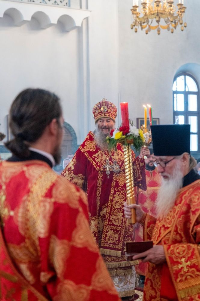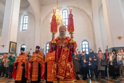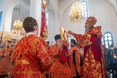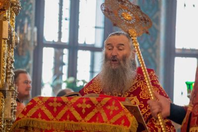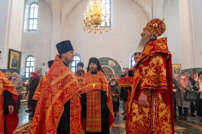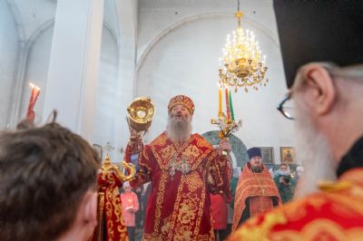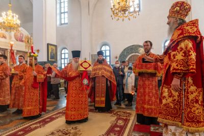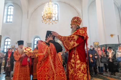 За богослужением митрополит Иоанн вручил церковно-иерархические награды: ключарь Благовещенского собора протоиерей Сергий Поглазов удостоен права совершать Божественную литургию с отверстыми Царскими вратами до Херувимской; клирик собора иерей Евгений Самойлов награжден камилавкой.