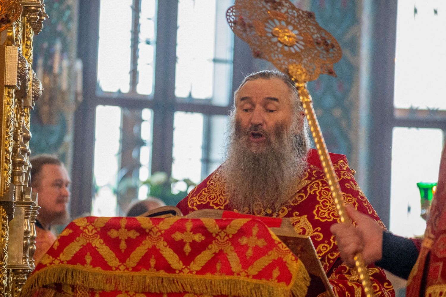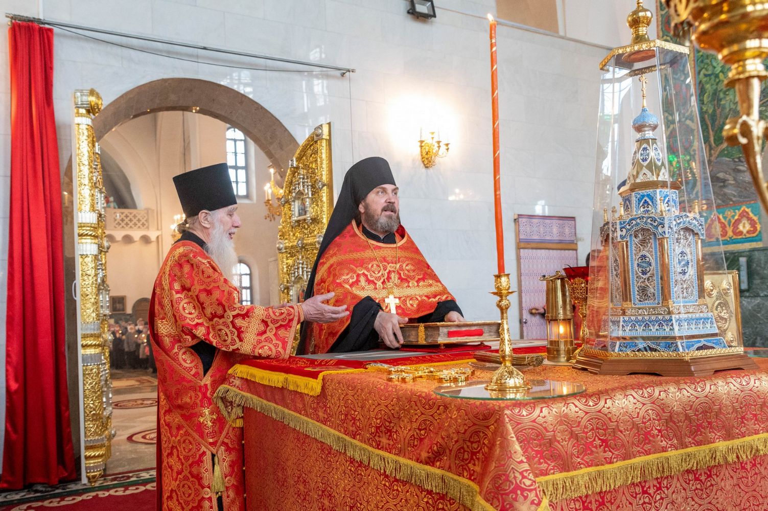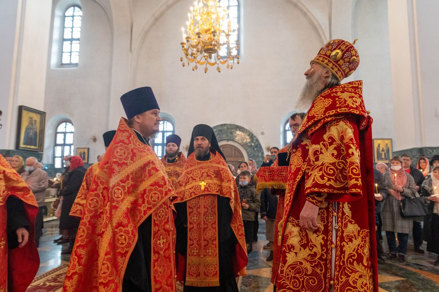 За богослужением митрополит Иоанн вручил церковно-иерархические награды: ключарь Благовещенского собора протоиерей Сергий Поглазов удостоен права совершать Божественную литургию с отверстыми Царскими вратами до Херувимской; клирик собора иерей Евгений Самойлов награжден камилавкой.