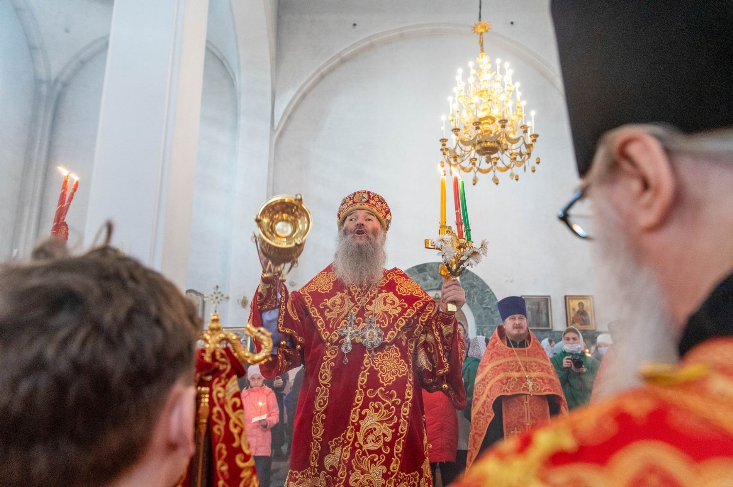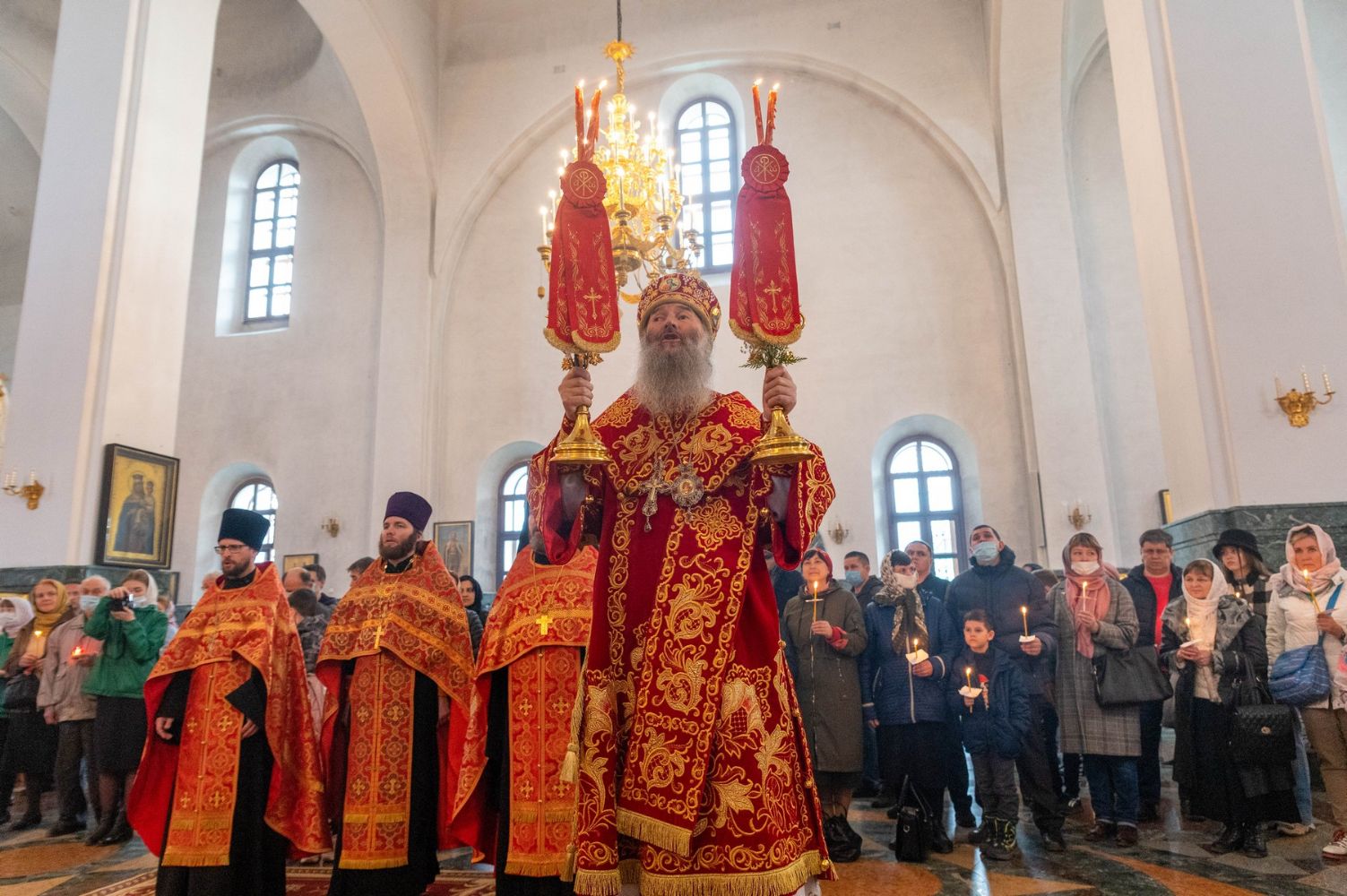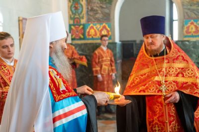 2 мая, в праздник Светлого Христова Воскресения, митрополит Йошкар-Олинский и Марийский Иоанн совершил Пасхальную великую вечерню в Благовещенском кафедральном соборе.