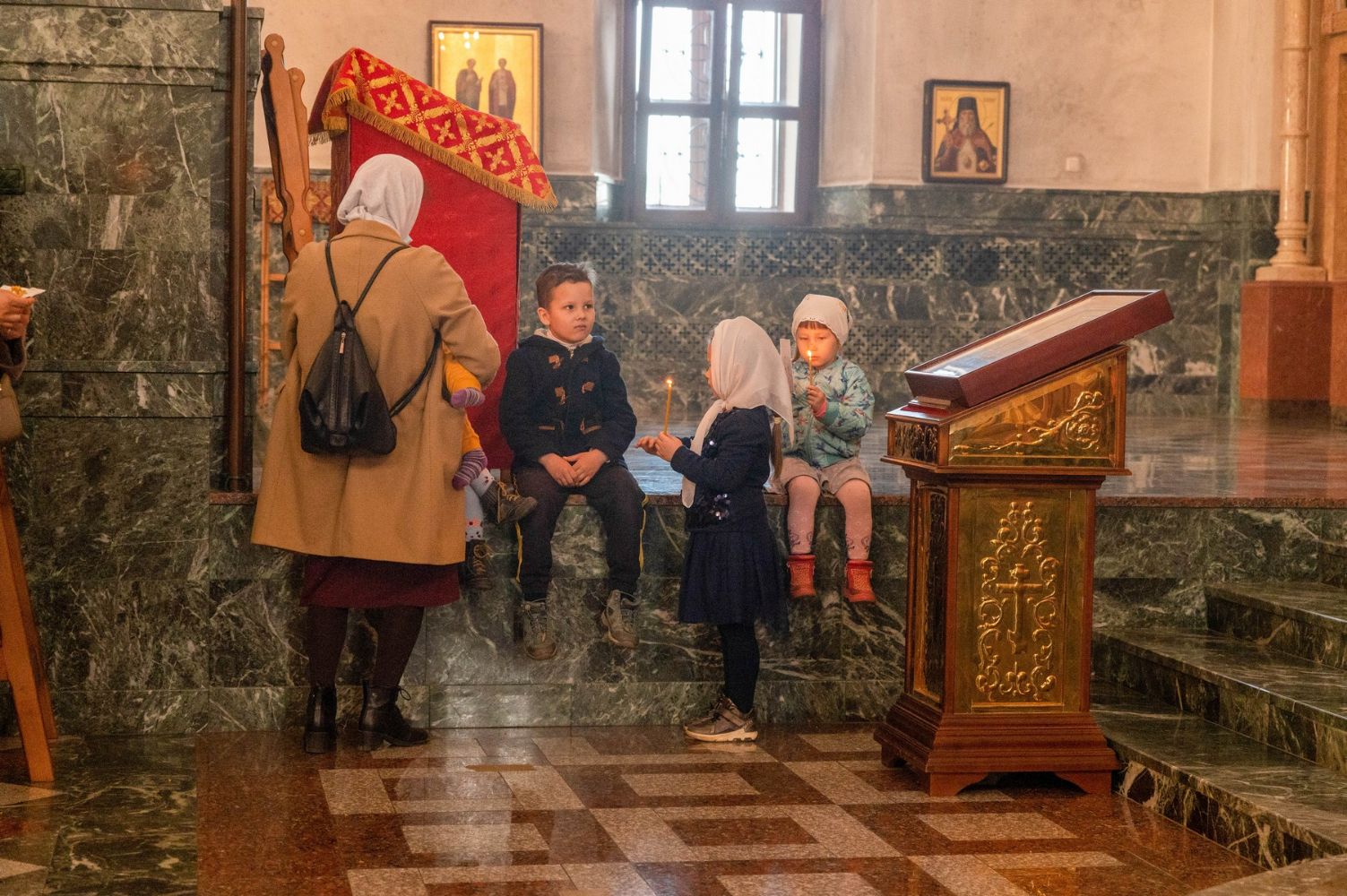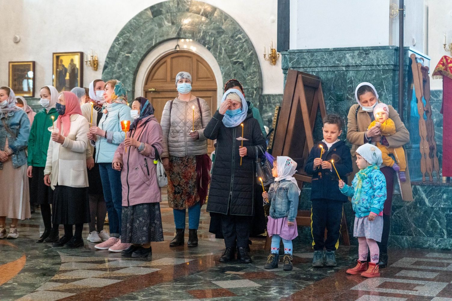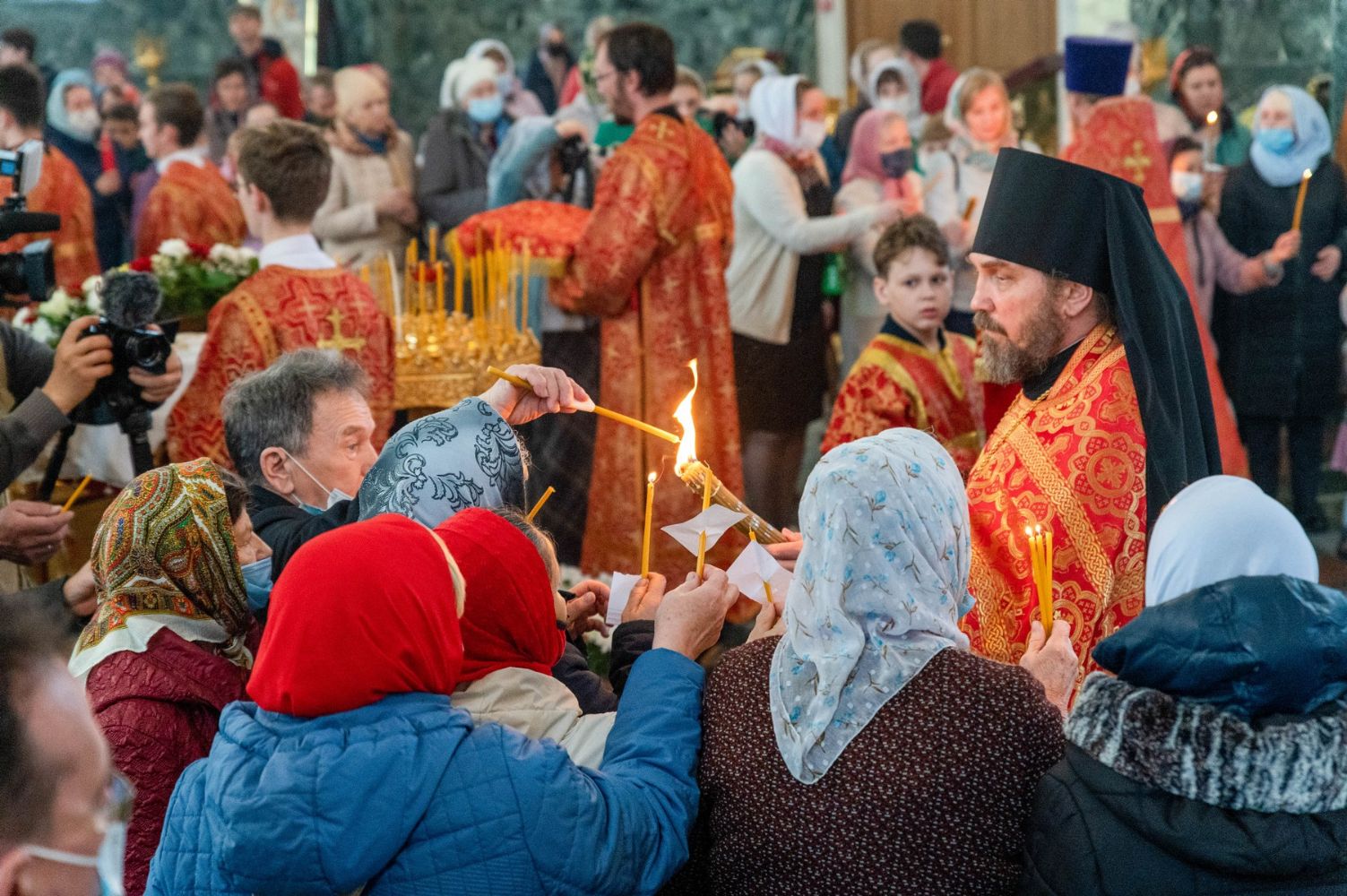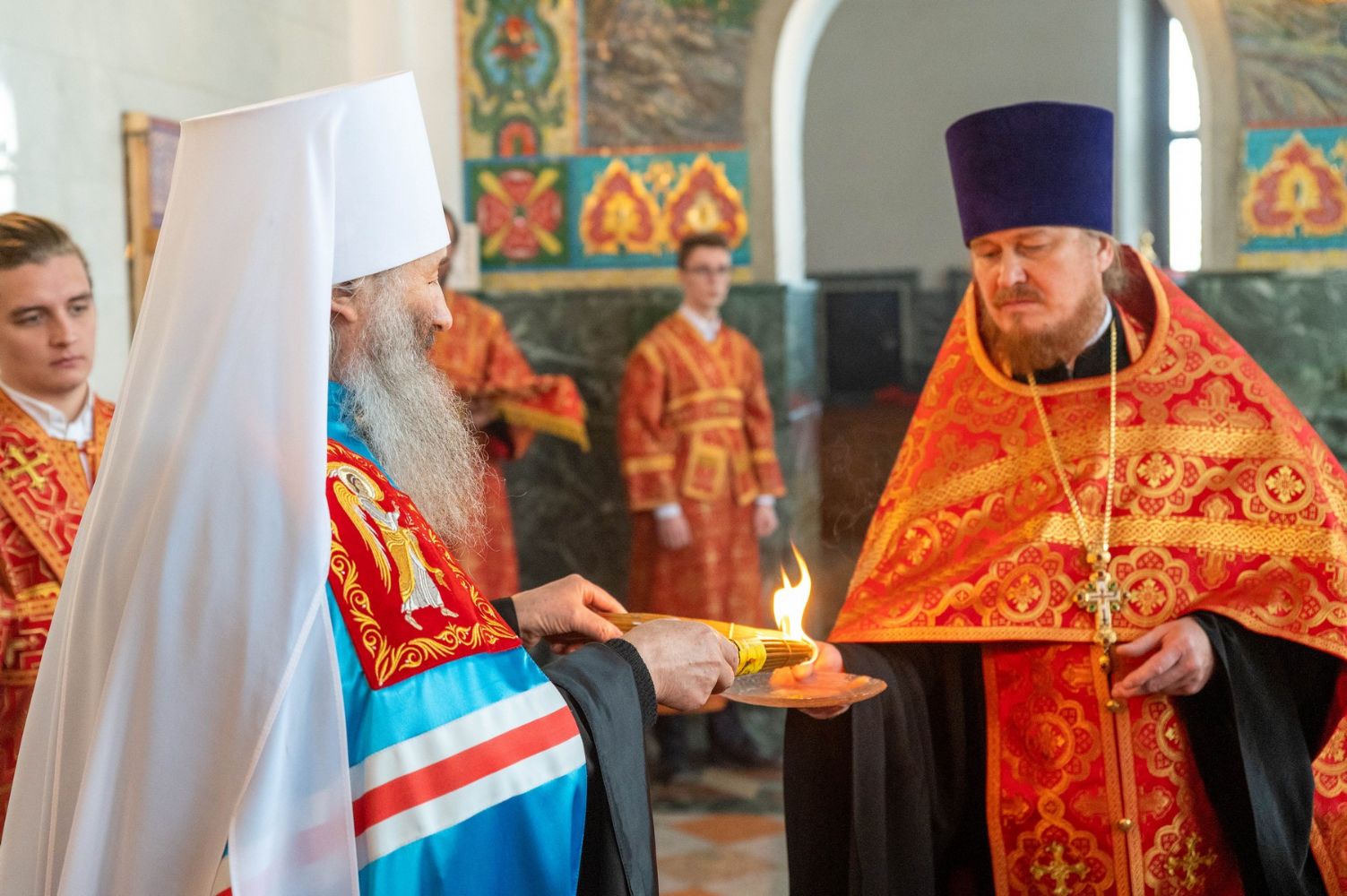 Перед началом богослужения духовенство и верующие встречали Благодатный огонь, который был привезен из Храма Воскресения Христова (Гроба Господня) г. Иерусалима в Москву, а затем доставлен в Йошкар-Олинскую и Марийскую епархию.