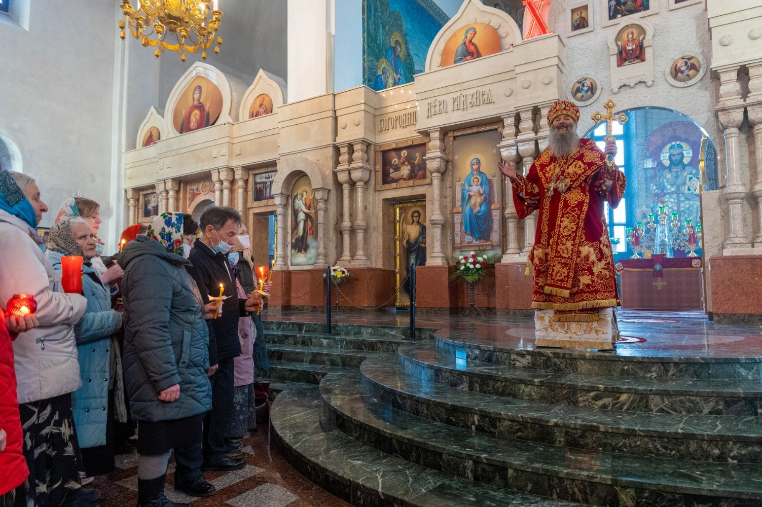 После богослужения Владыка обратился к верующим с архипастырским словом: «Благодатный огонь снисходит от Гроба Господня, являясь видимым свидетельством для всех нас – что Господь воскрес и подает нам милость Свою, продлевая нашу жизнь на земле…