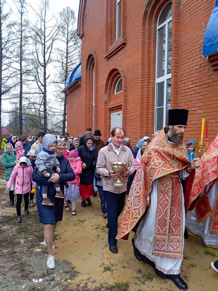 Пасхальное богослужение возглавил настоятель храма Казанской иконы Божией Матери с. Нурма иерей Александр Коваль. После Литургии прошел крестный ход вокруг нового храма.