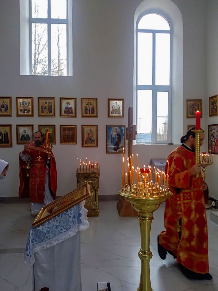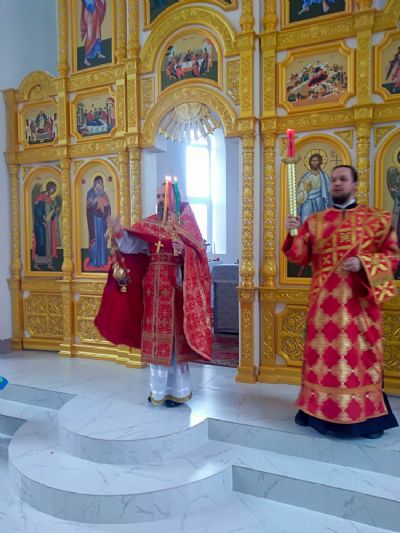 3 мая, в понедельник Светлой седмицы, в строящемся в поселке Краснооктябрьский (Медведевский район) храме в честь иконы Пресвятой Богородицы «Споручница грешных» состоялась первая Божественная литургия.